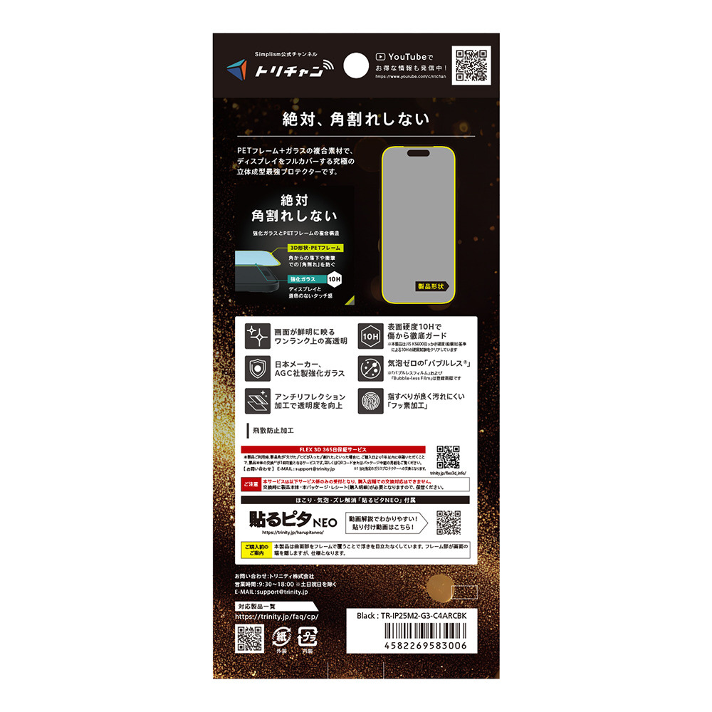 | 商品名 | iPhone 17 フィルム [FLEX 3D] 究極の透明感 アルティメットクリア 複合フレームガラス ブラック TR-IP25M2-G3-C4ARCBK |