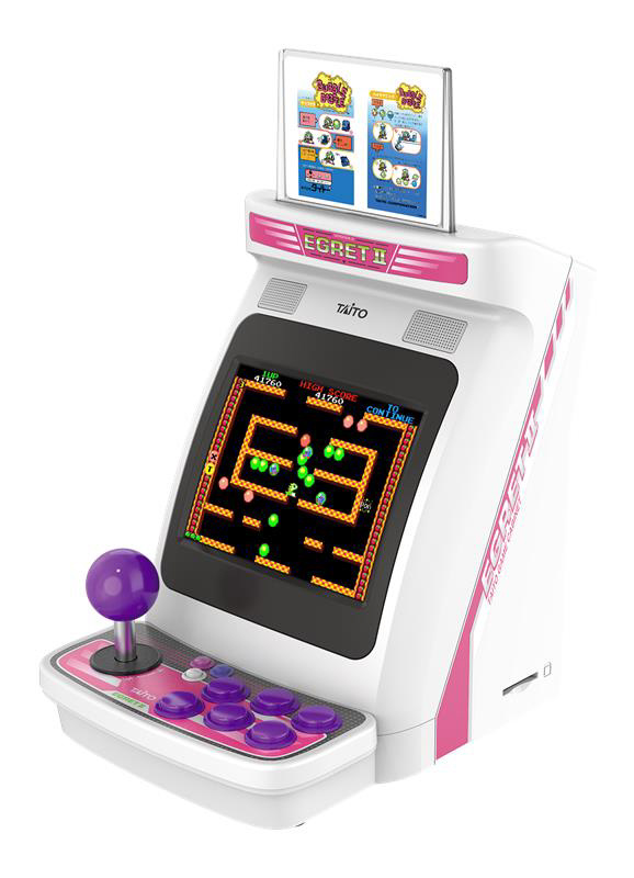 1978年〜1997年にゲームセンターで活躍したゲームが40タイトル内蔵したアーケード筐体型ゲーム機です。専用SDカード(別売)を挿し込むと新たに10タイトルが遊べます。