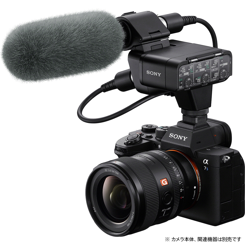 また、外部音声入力装置や録音用機器に加えて、XLR端子を搭載するCinema Line(シネマライン)やミラーレス一眼カメラαなどのカメラ商品群とも組み合わせて使用でき、幅広い映像制作・音声収録の環境に対応します。