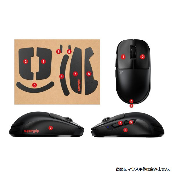 日本で開発されたこの革命的な素材は、最高のものを求める最も要求の厳しいプロアスリートのために設計されています。 グリップテープはコントロール性に優れるだけでなく、手汗を吸収してグリップ力を高める効果もあります。ガーゼの包帯を独自の製法で薄く丈夫なシートにし、強度と柔軟性を両立させました。さらに3M社の粘着剤を使用し、マウスにぴったりフィットするようラミネート加工しています。精密なカッティング技術により、それぞれのパーツがぴったりとフィットし、自信とコントロール力を発揮してくれます。