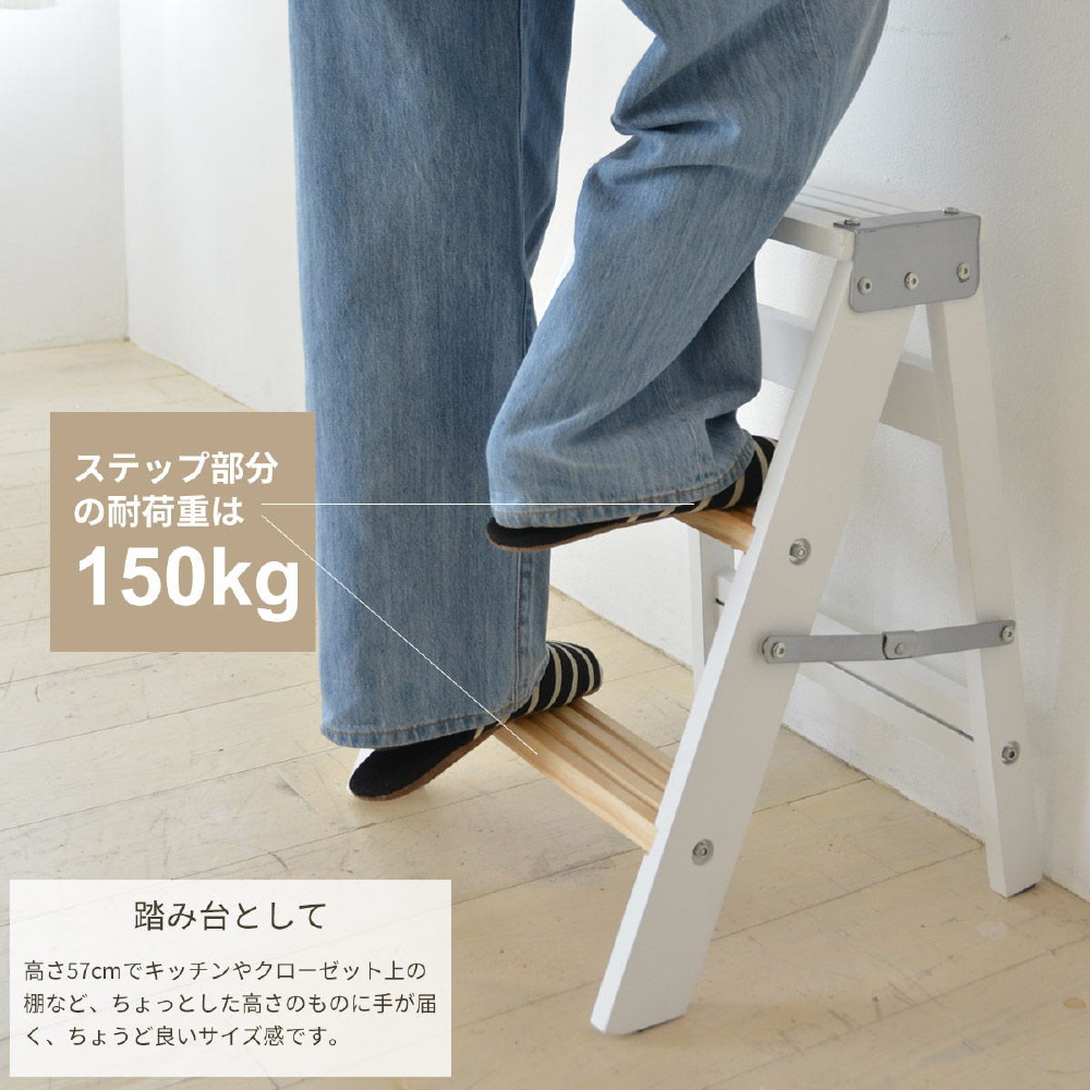 踏み台や折りたたみの椅子、インテリアラックとしてお家に1台あると便利なラダーラック、ステップスツール。耐荷重200kgと安全性にも優れています