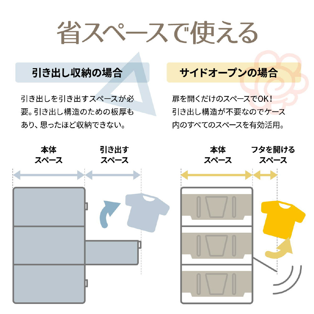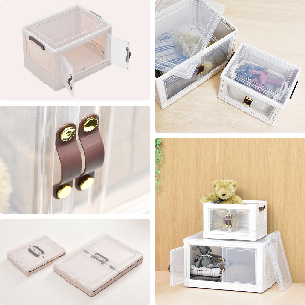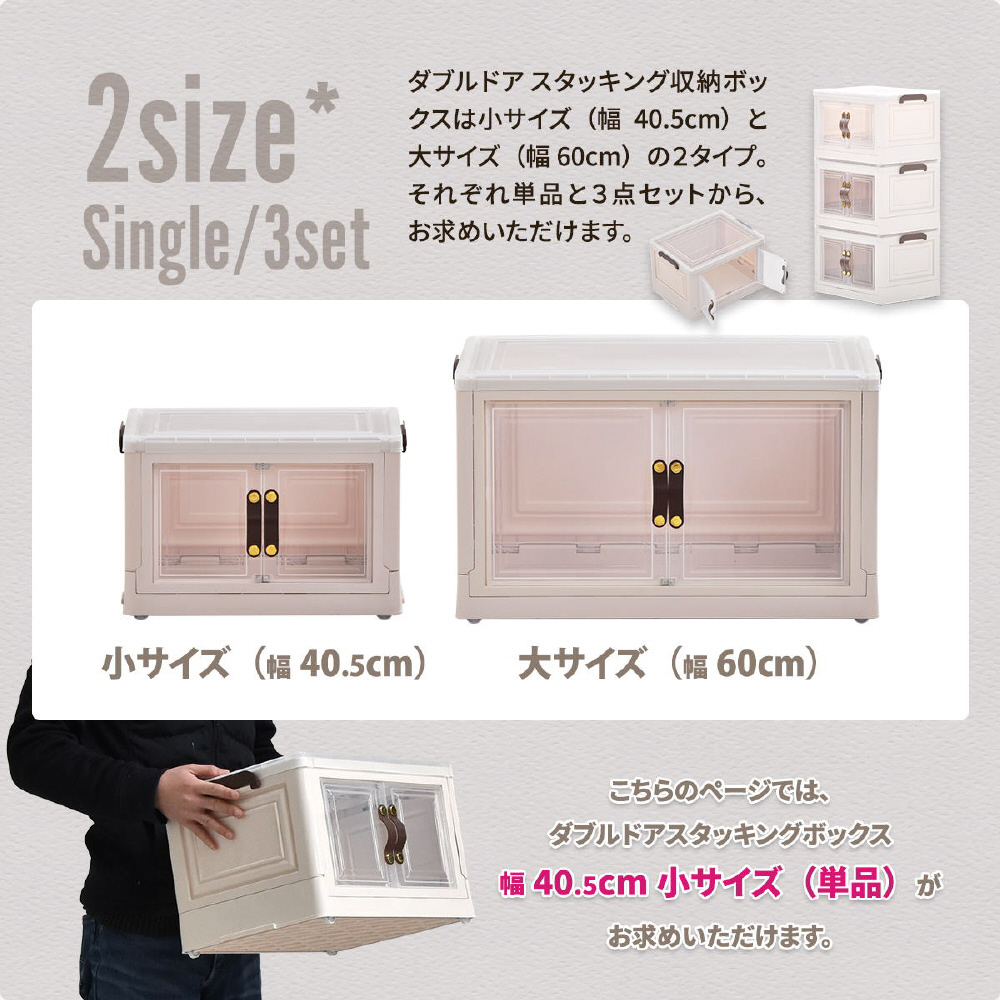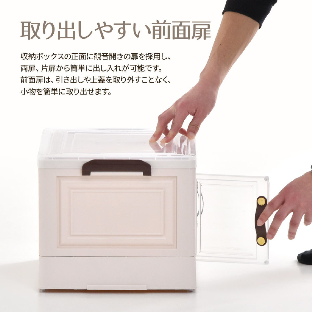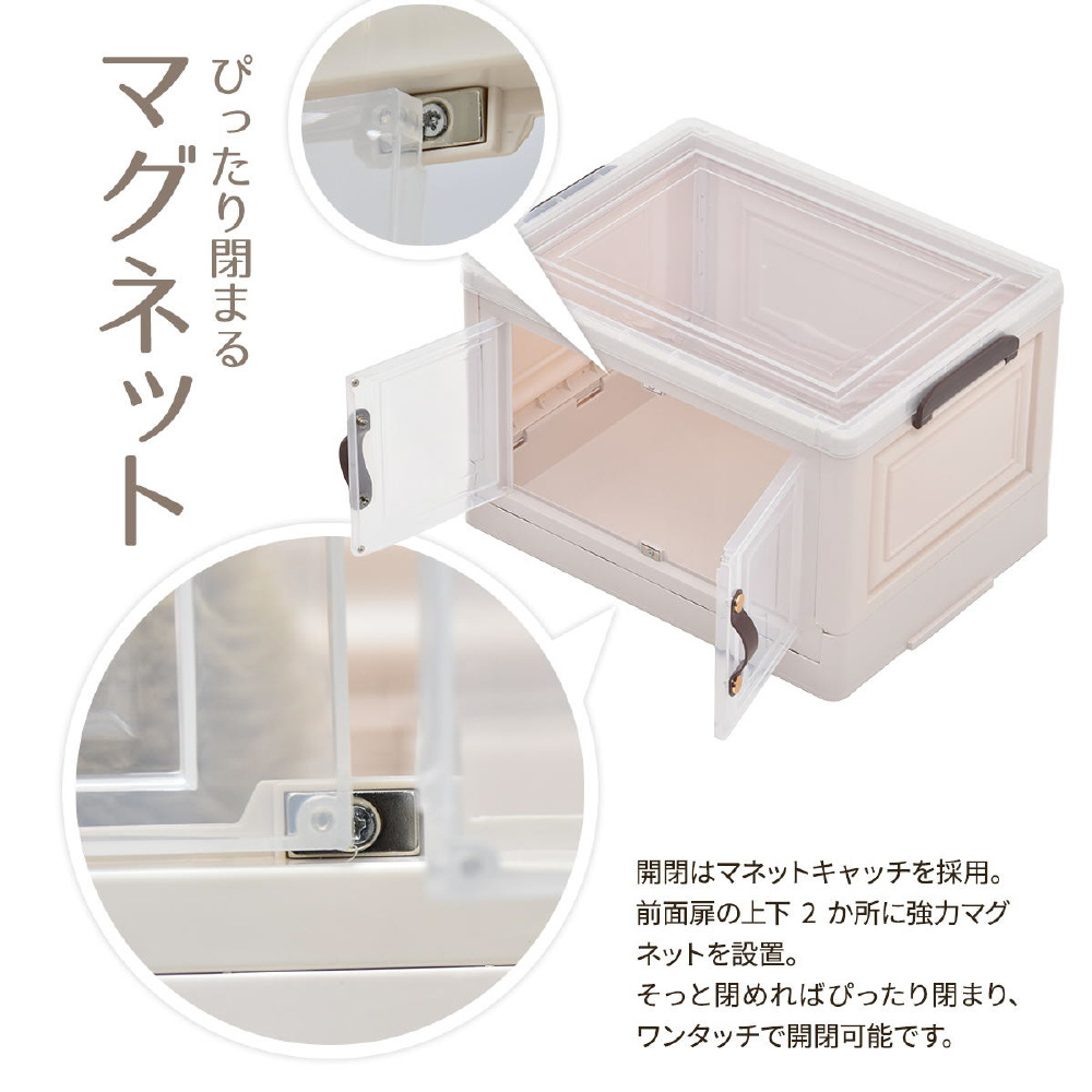 半透明で中身が見える可愛い収納ボックス。底部分にはキャスターがついており、移動が楽なのでお掃除する時にも便利です。また積み重ねができる仕様になっているので、お部屋のスペースやご利用になりたい容量などに合わせて積み重ねてお使いいただける点や、天板と前扉が半透明なので中身がすぐわかるという点もおすすめです。