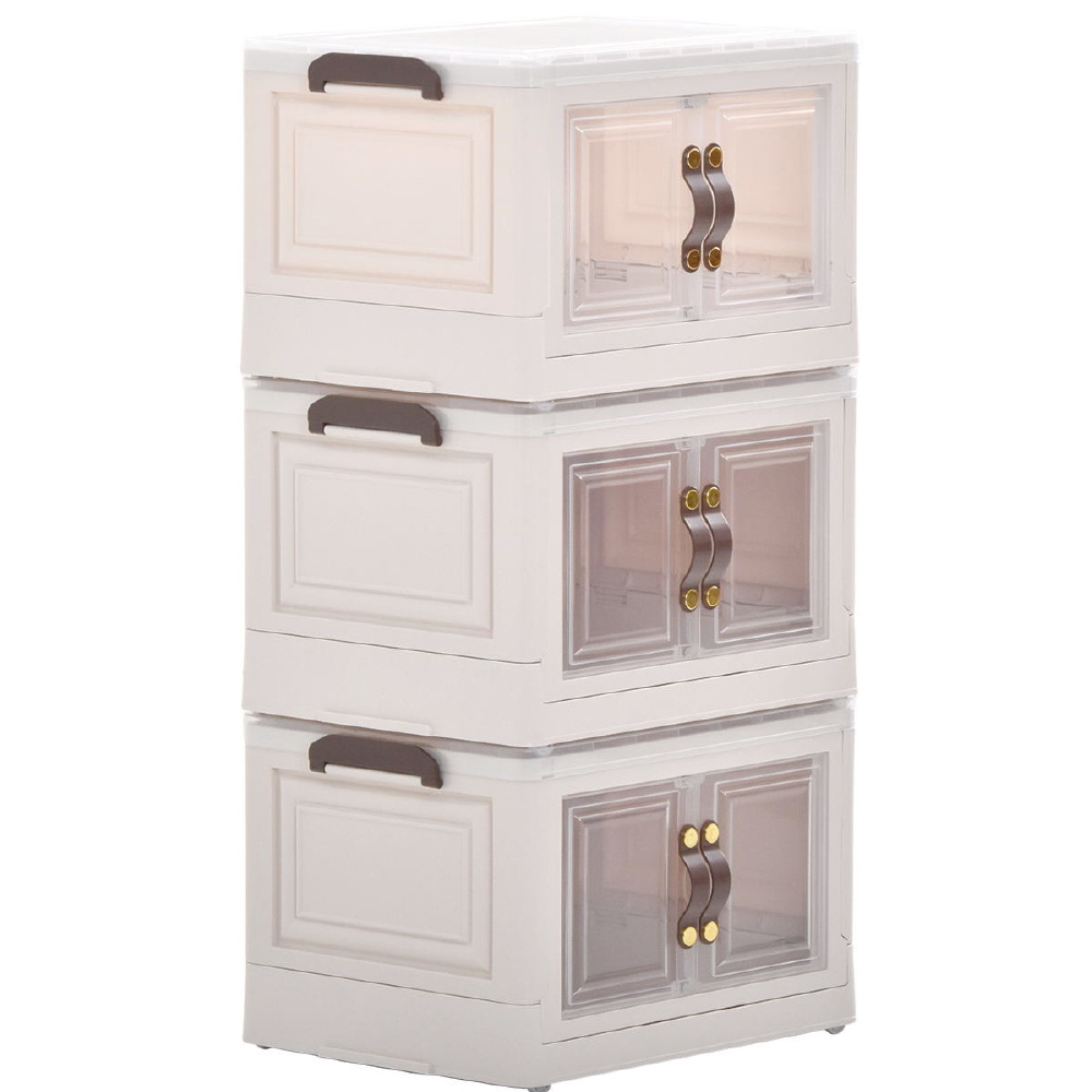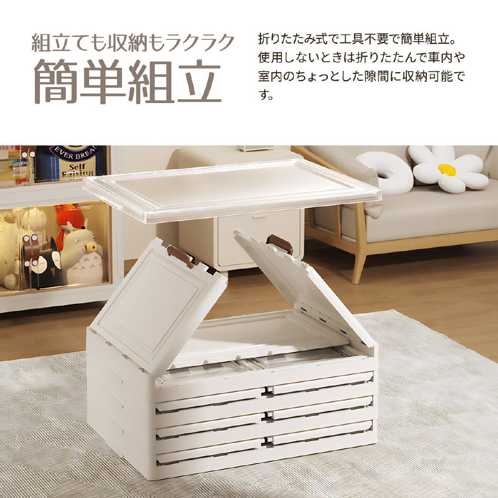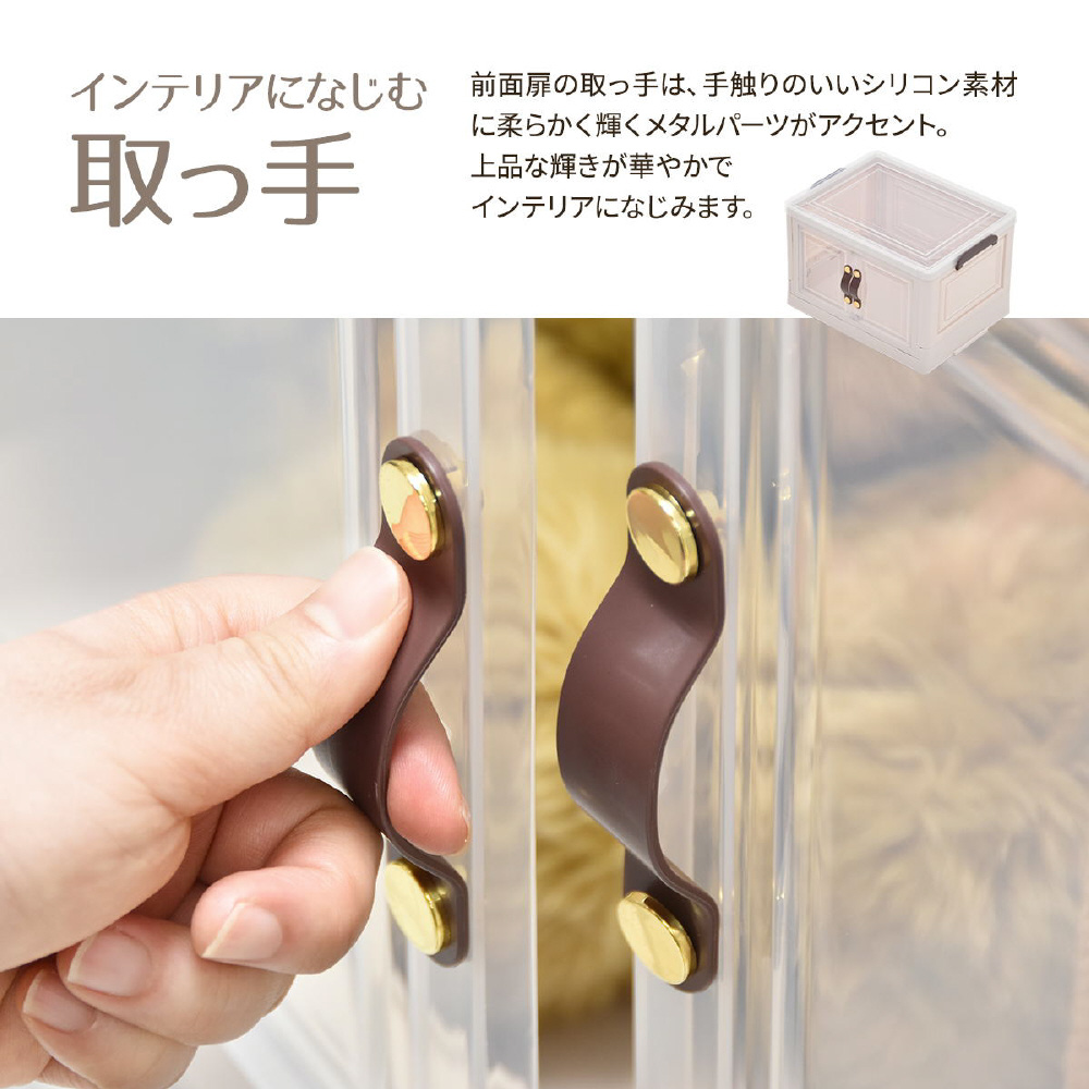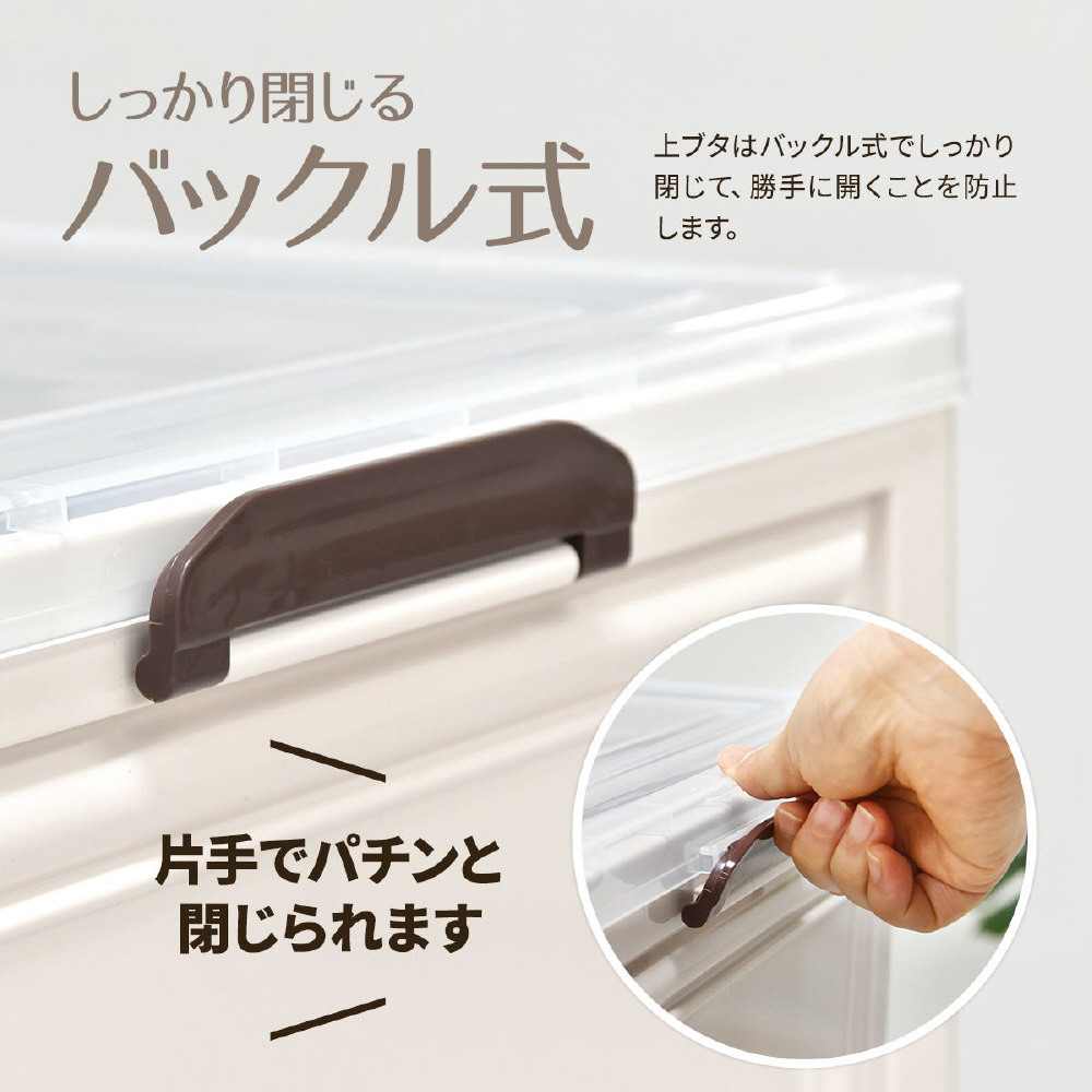 半透明で中身が見える可愛い収納ボックス。底部分にはキャスターがついており、移動が楽なのでお掃除する時にも便利です。また積み重ねができる仕様になっているので、お部屋のスペースやご利用になりたい容量などに合わせて積み重ねてお使いいただける点や、天板と前扉が半透明なので中身がすぐわかるという点もおすすめです。