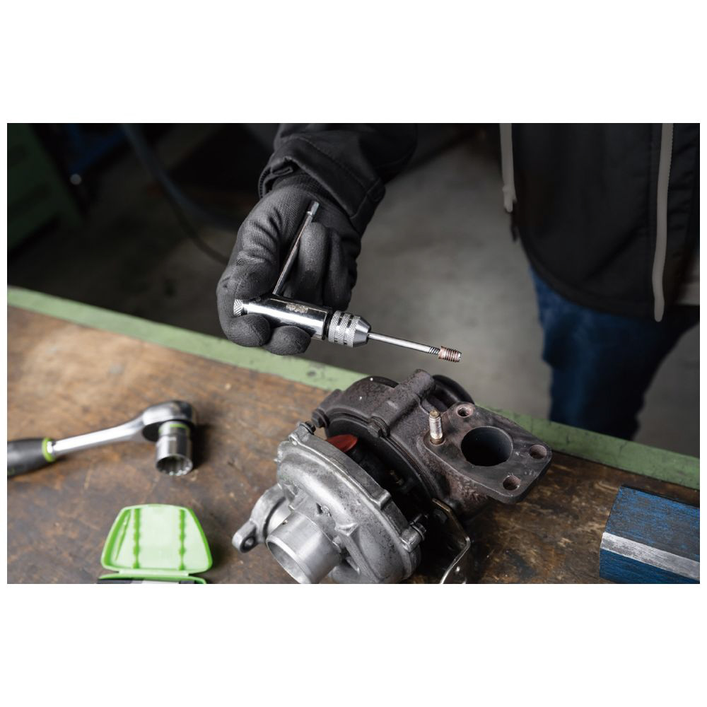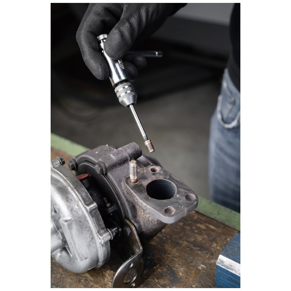 ■折れたボルトの中心に穴をあけて、適合するサイズのエキストラクターを反時計回りの方向にねじ込むことでボルトを抜き取ることができます。