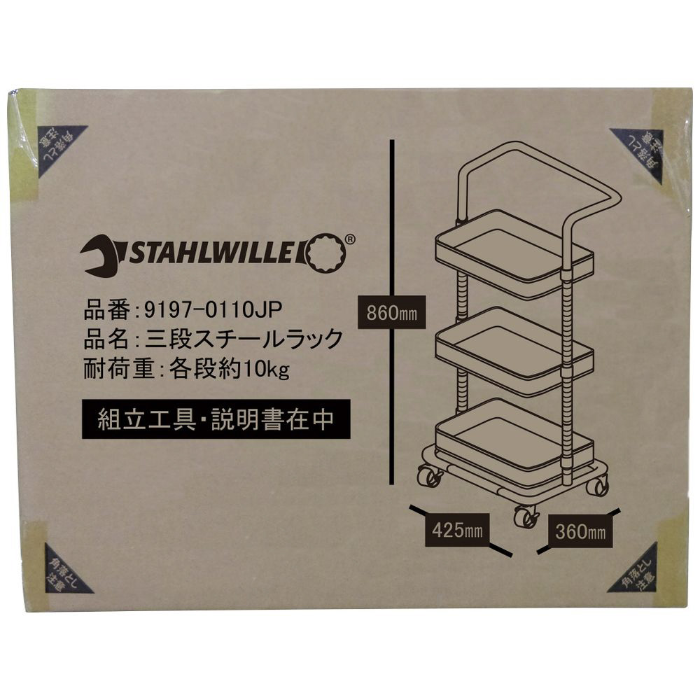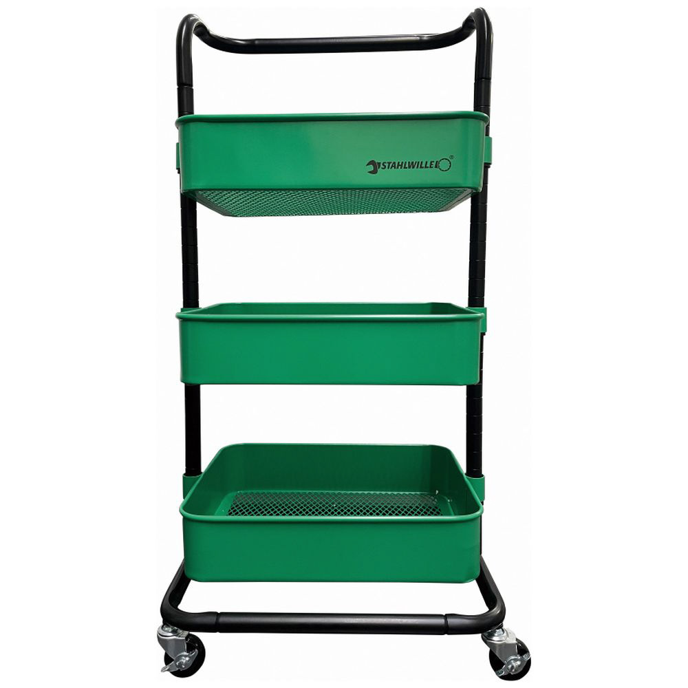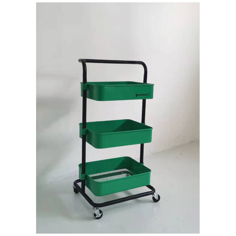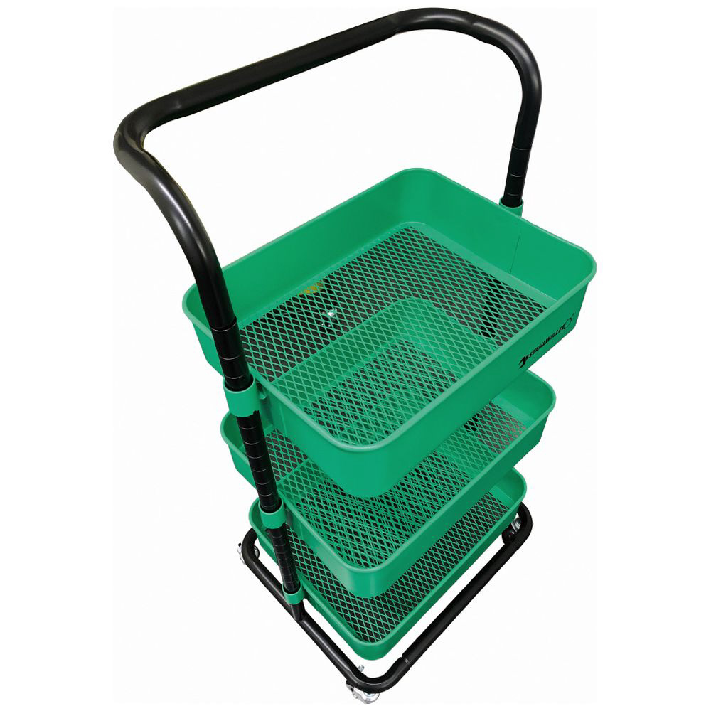 キャスター付 三段スチールラック グリーン 9197-0110JP