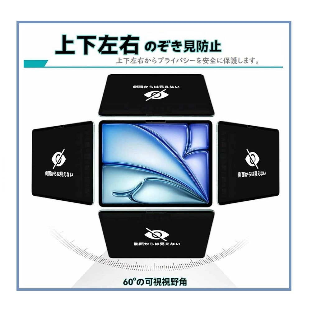 iPad360°覗き見防止 液晶保護ガラスフィルム(iPad 9.7/Pro9.7/Air1/Air2用)