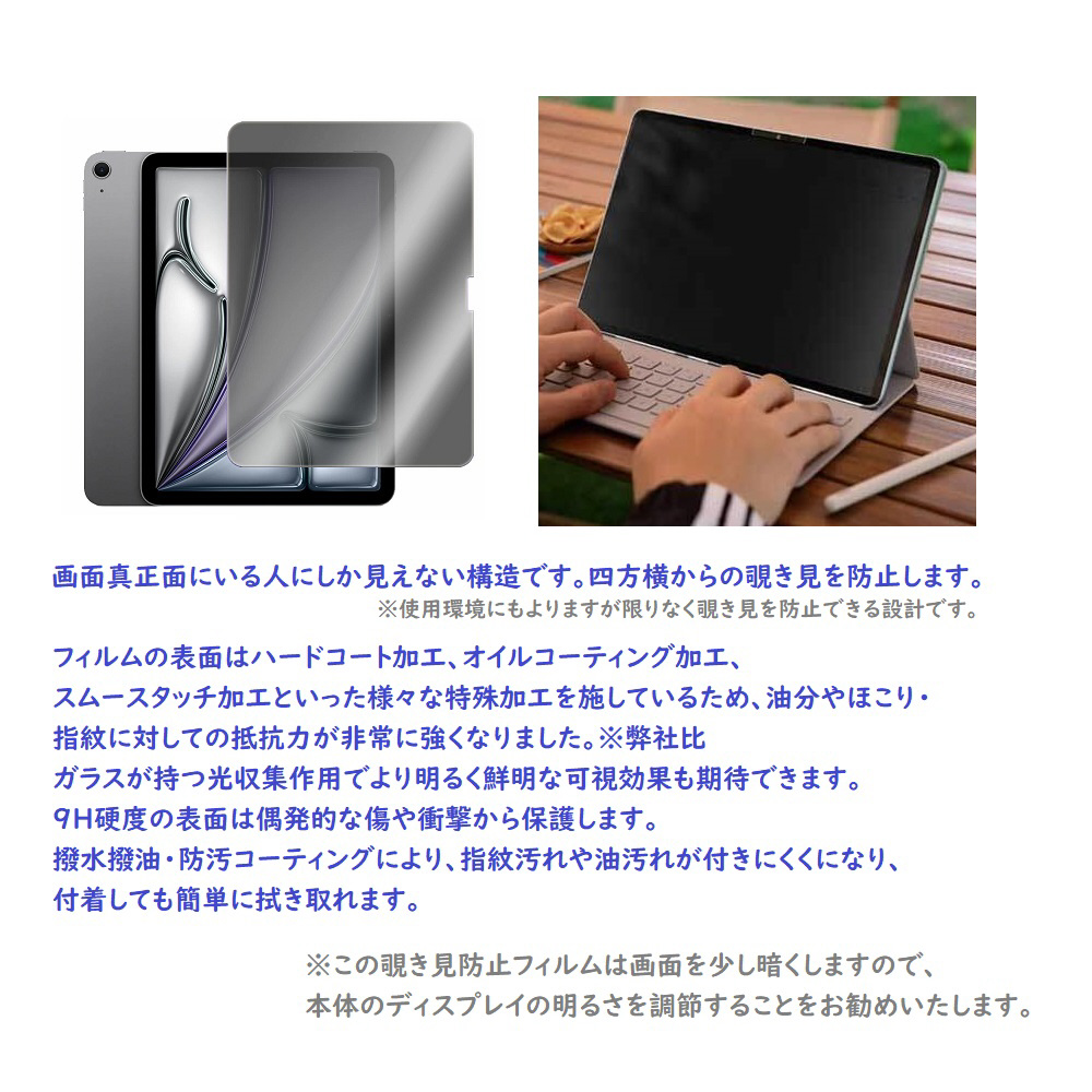 iPadでの作業時、どうしても見られては困る!といった問題を少しでも解決するプライベート優先、覗き見防止保護ガラスフィルムです。