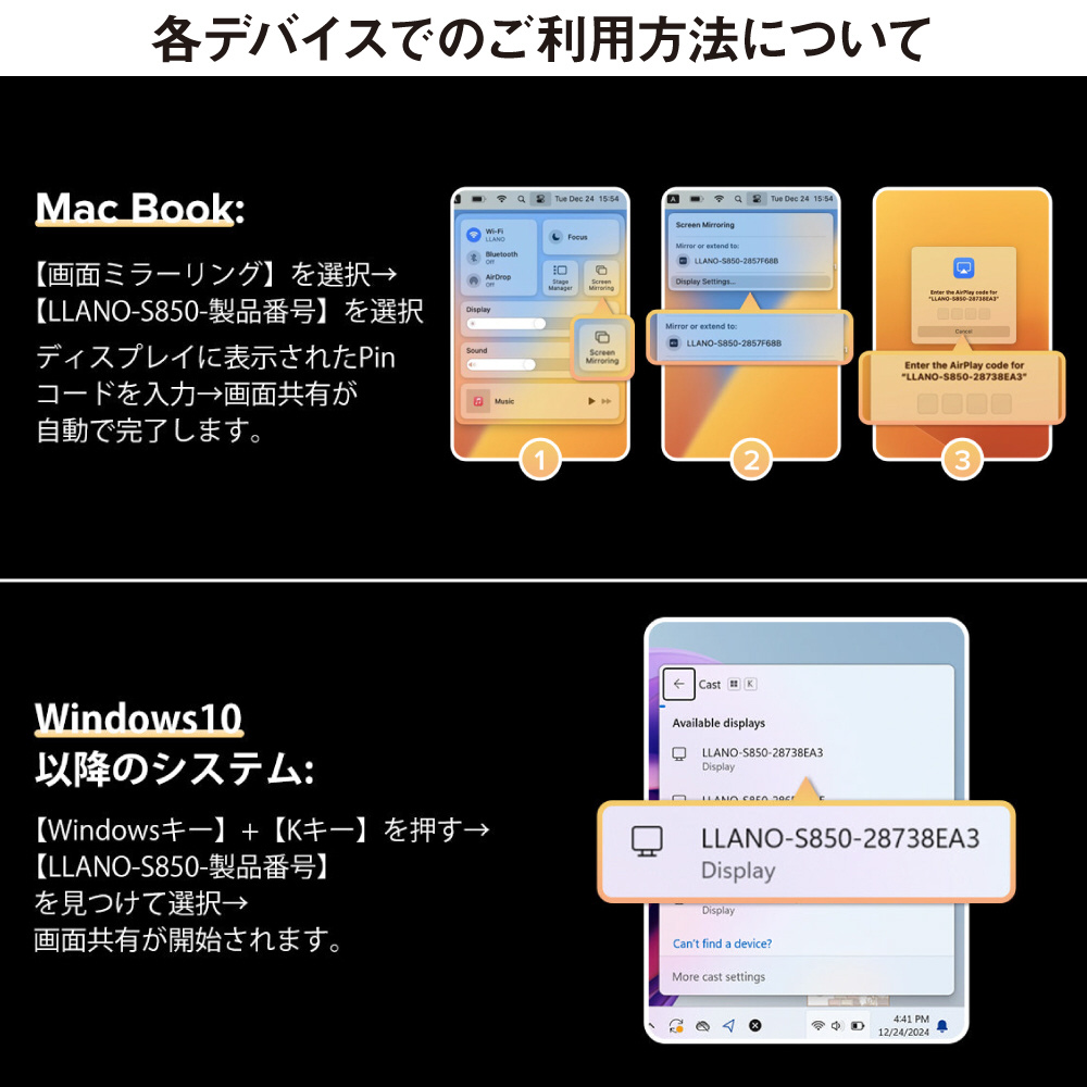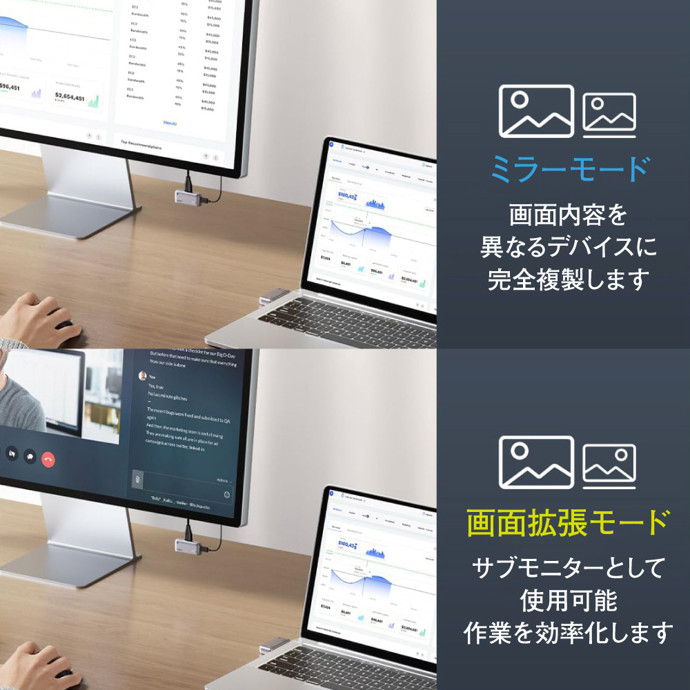 llanoワイヤレスHDMI送受信機セットは、複製モードと拡張モードをサポート。複製モードでは画面の内容が完全にターゲットデバイスに複製され、同じ内容が表示されます。拡張モードでは、異なる内容をターゲットデバイスとの間で表示することができます。表示エリアを広げることで、仕事の効率を劇的に向上!マルチタスクをスムーズにこなせるため、オフィスワークや在宅勤務に最適です。作業環境を一新し、より生産的な毎日をサポートします!