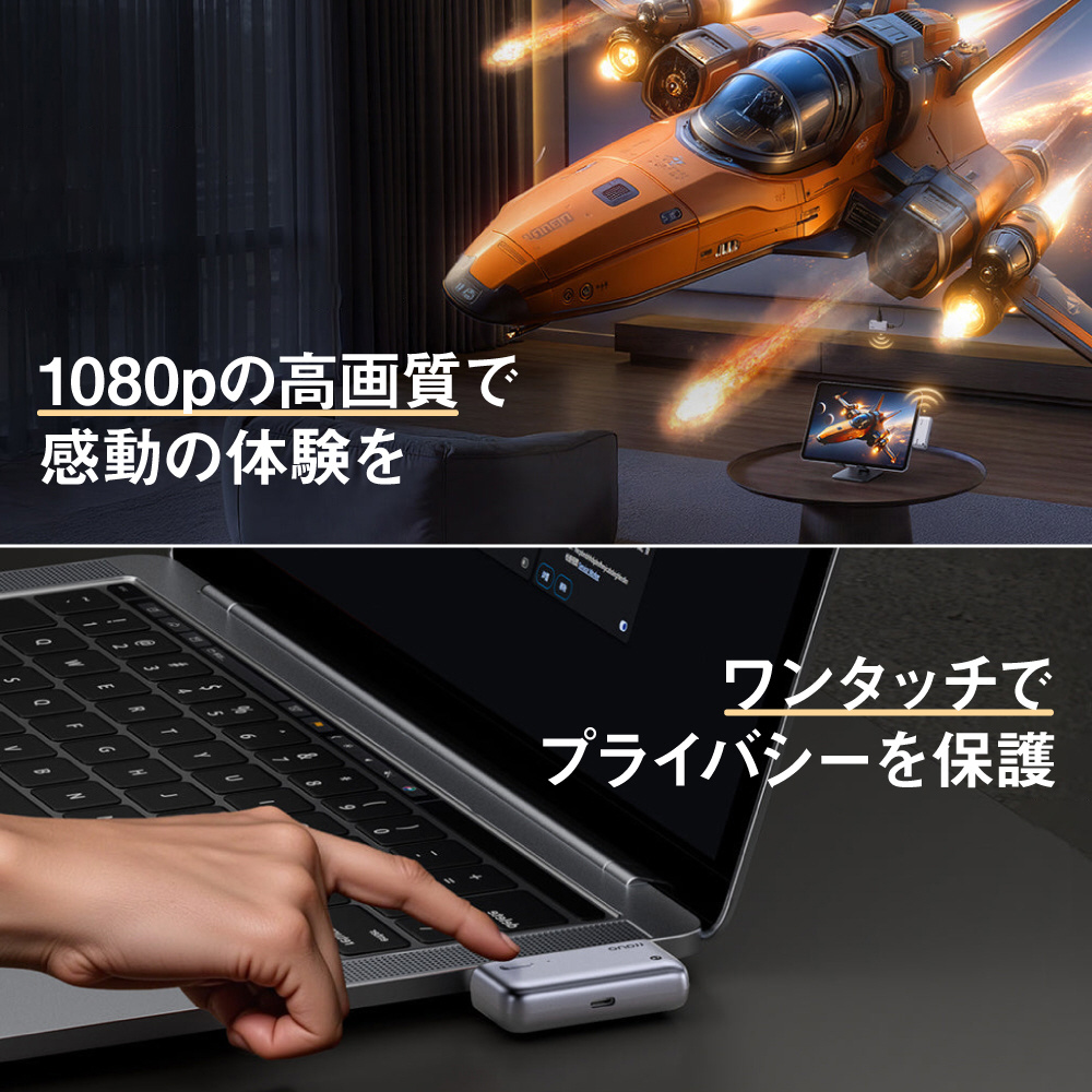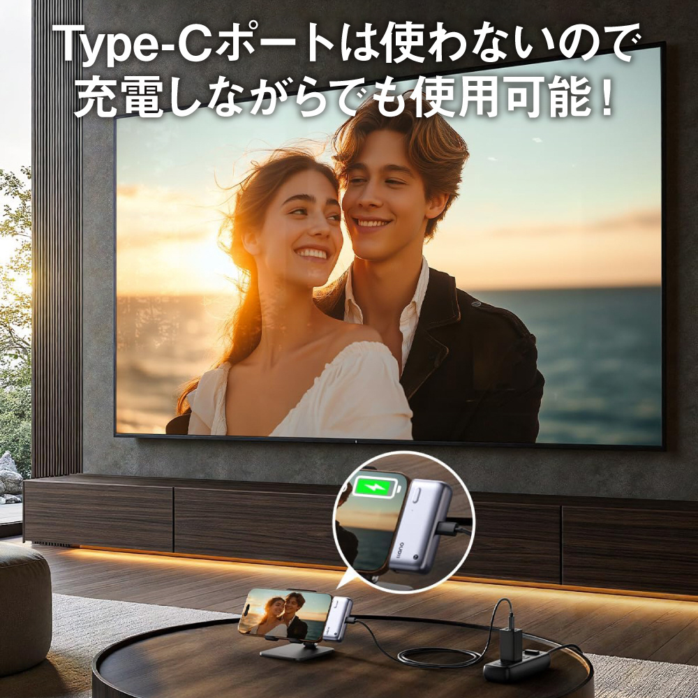 従来のワイヤレスhdmi製品の課題を解決-外部電源なしで動作し、新たにType-c充電ポートを搭載することで、使用しながらスマートフォン、ノートパソコンなど充電が可能に。