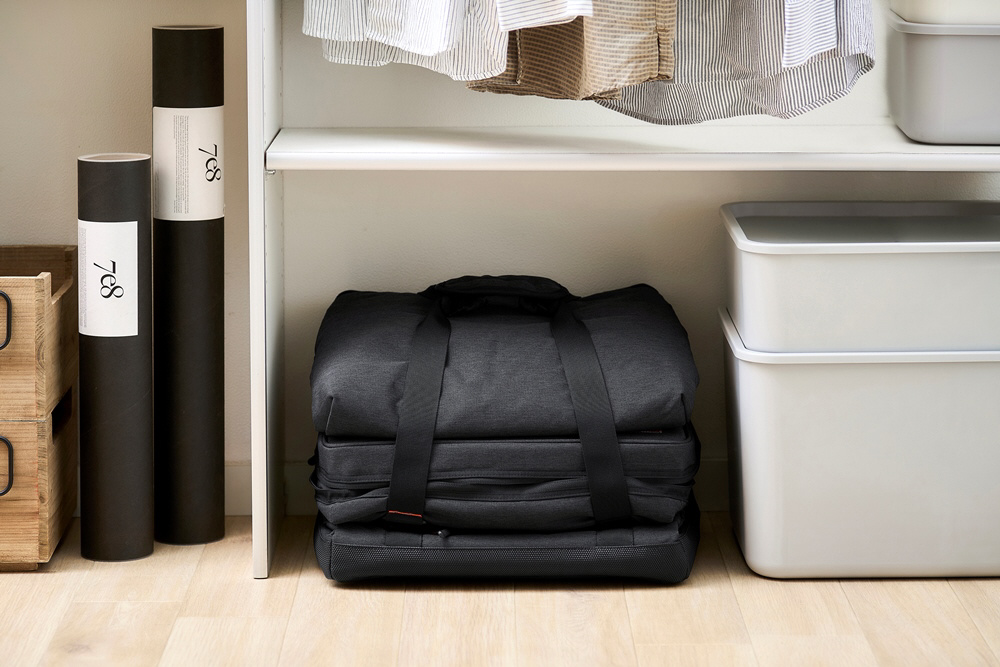 コンパクトに折りたためるから、持ち運びや収納にも便利。
