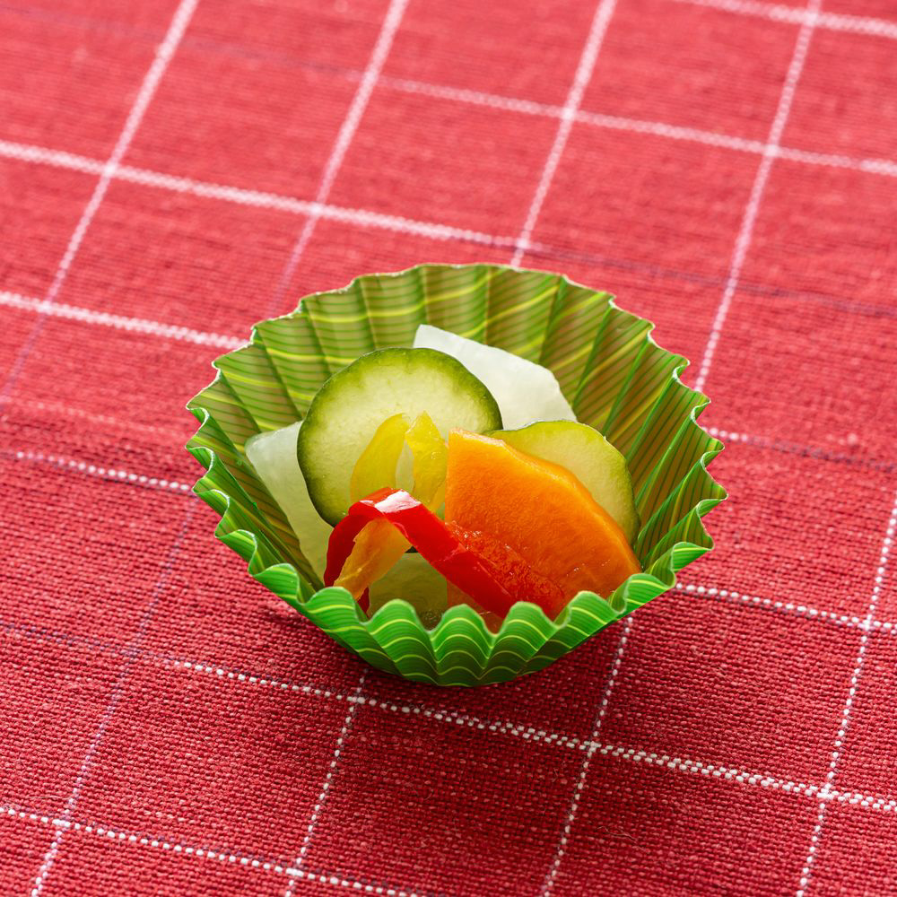 (2)バラン特有の鮮やかな緑が食材を引き立てます。