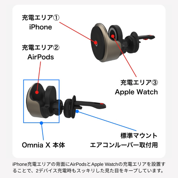 Omnia X MagSafe 3in1 マルチワイヤレスカーチャージャー ブラック/ゴールド