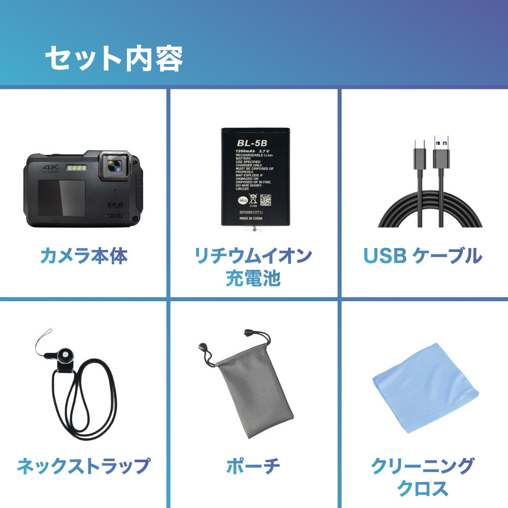 ●セット内容 :カメラ本体・リチウムイオンバッテリー・USBケーブル・ネックストラップ・