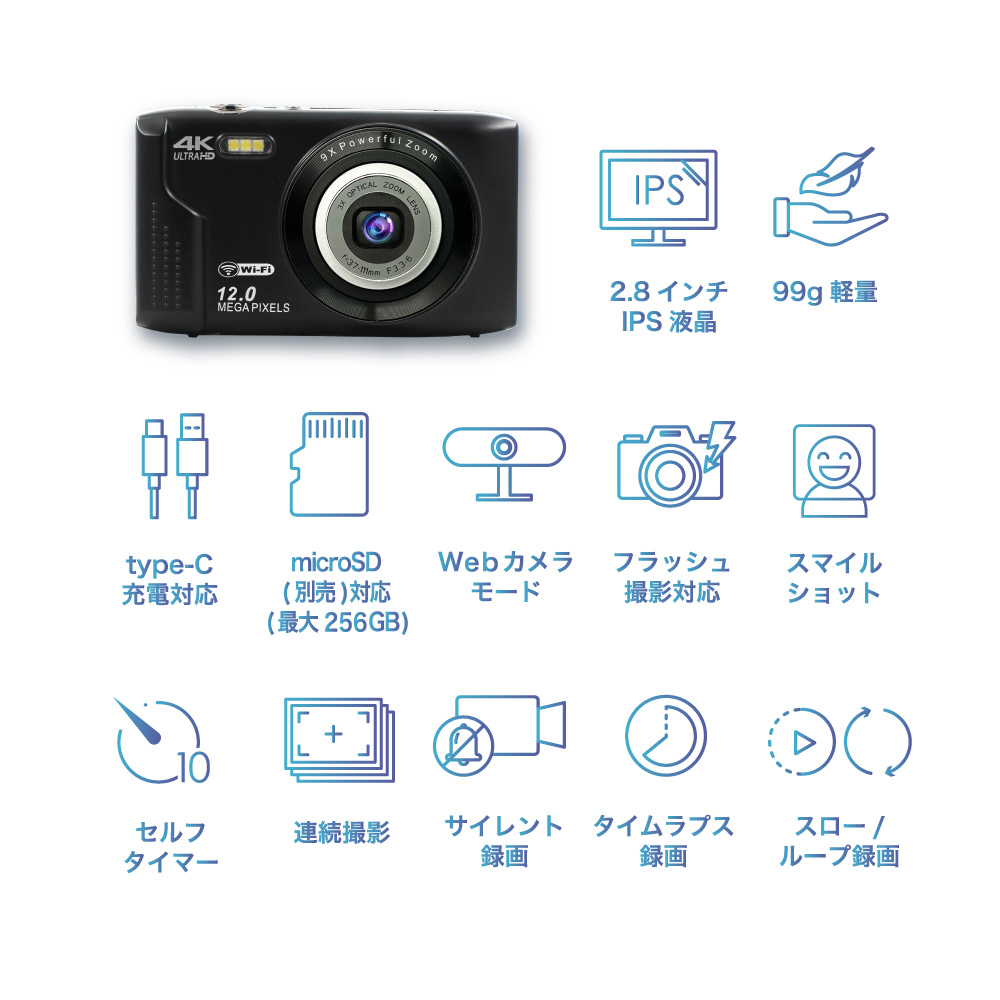 | 商品名 | 光学ズーム対応 コンパクトデジタルカメラ Bluemake TT-OD12C |