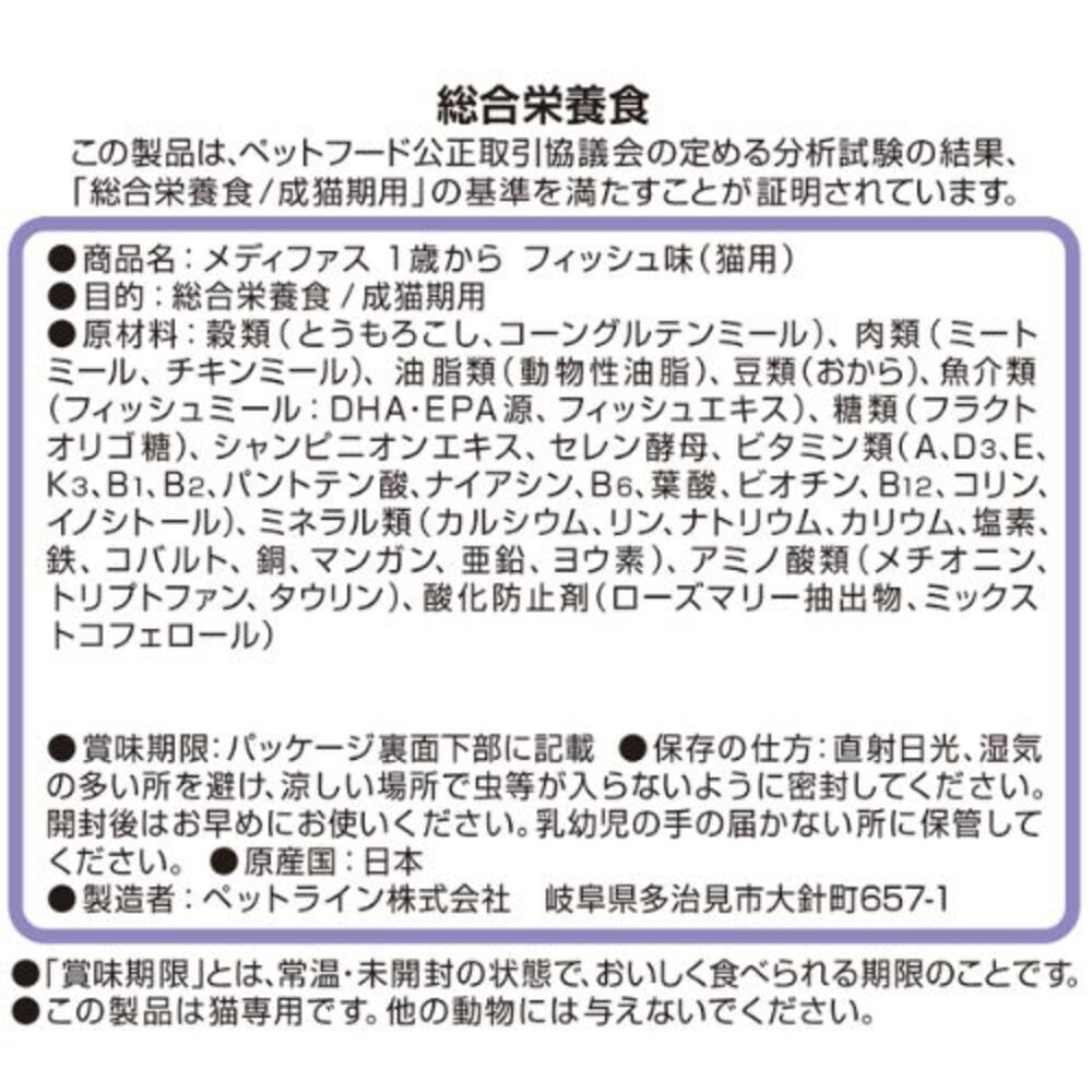 | 商品名 | ペットライン メディファス 1歳から フィッシュ味 6kg |
