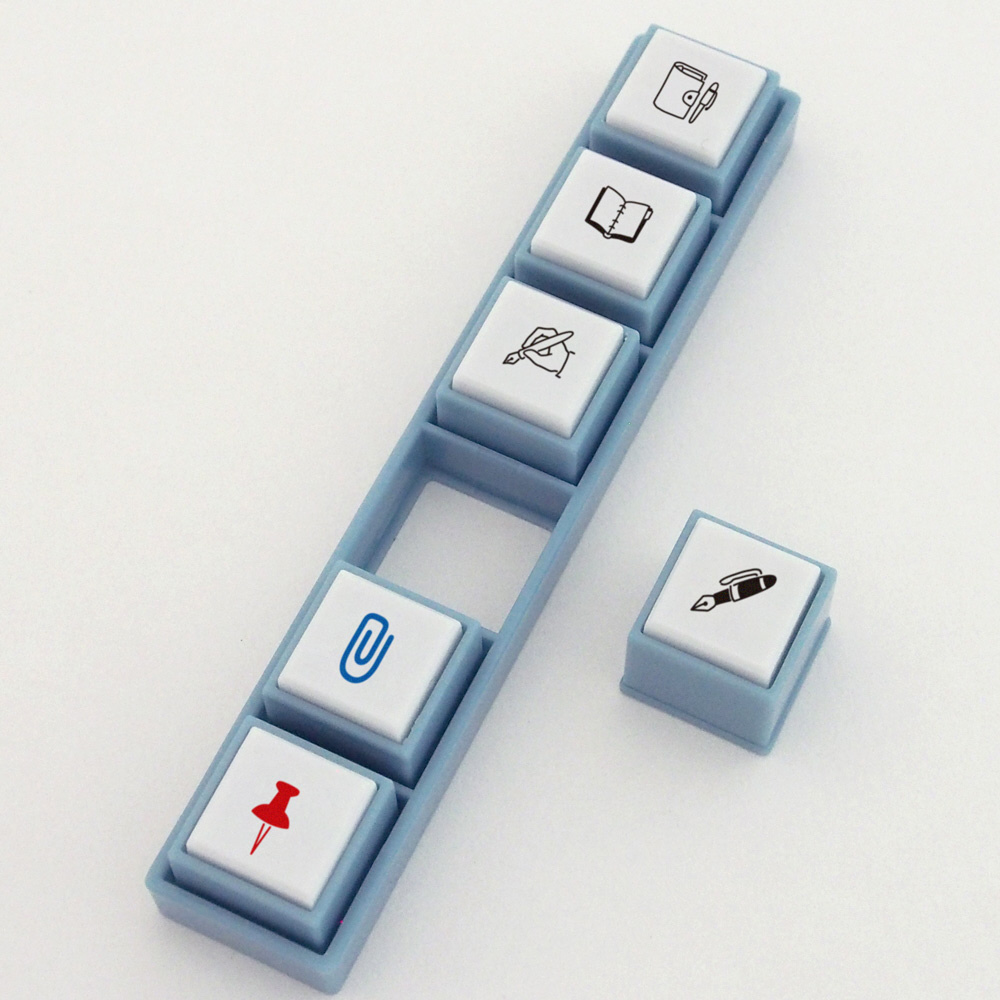 スタンプは1個ずつ枠から外して押したり、位置や向きを変えて枠にもどすこともできます。