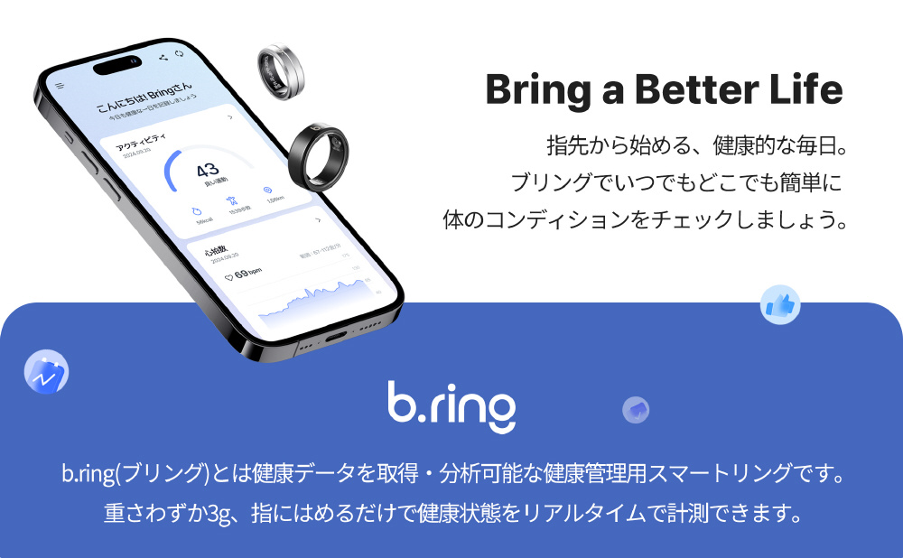 b.ring(ブリング)とは健康データを取得・分析可能な健康管理用スマートリングです。