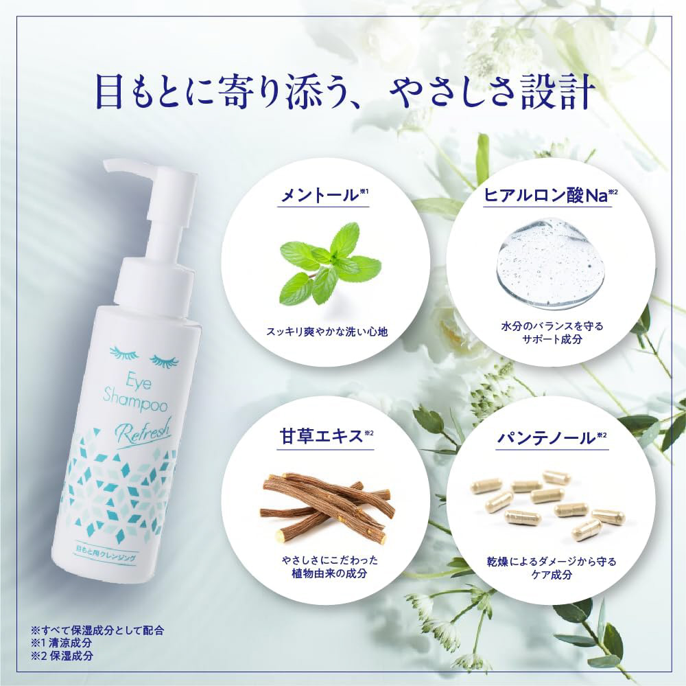 ヒアルロン酸Naや皮膚コンディショニング成分配合の目もと専用シャンプー。