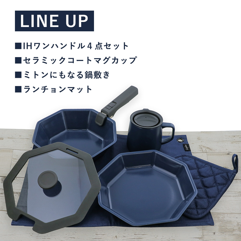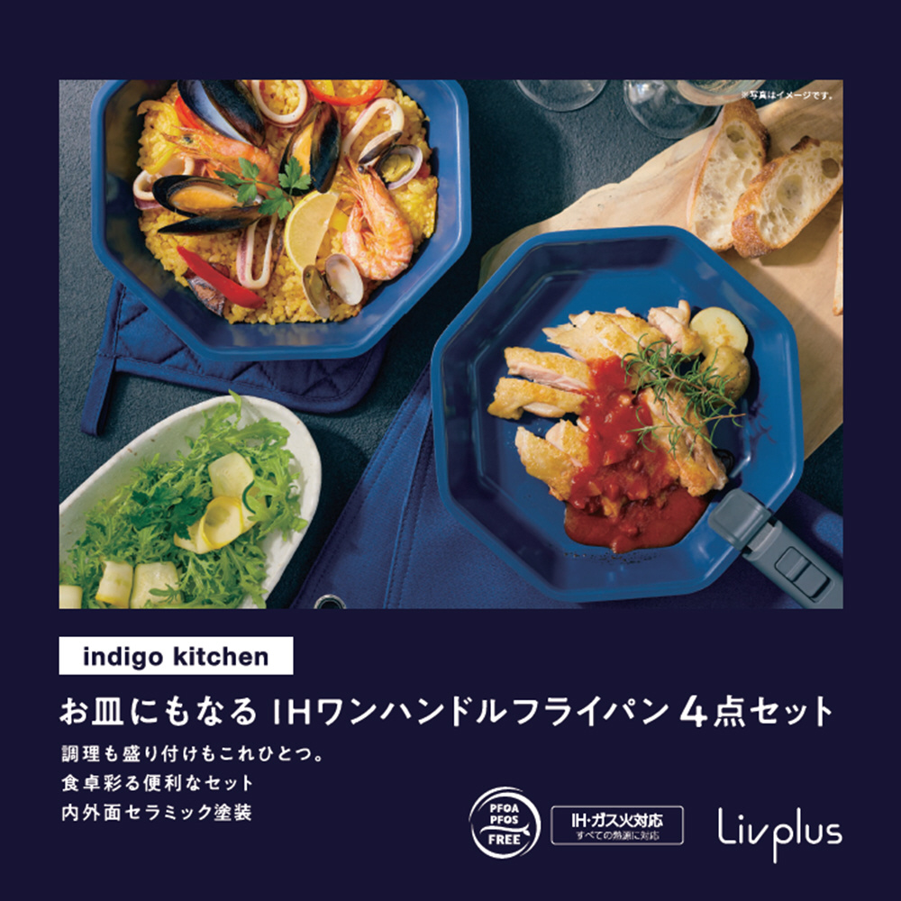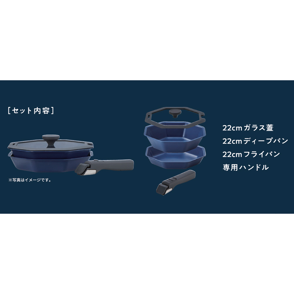 フライパン 深型フライパン ガラス蓋 取っ手 4点セット IH ガス火対応 オーブン 食洗機対応 インディゴ キッチン ネイビー LV-0051