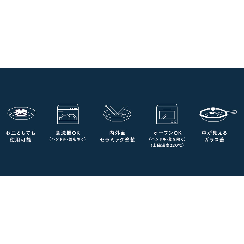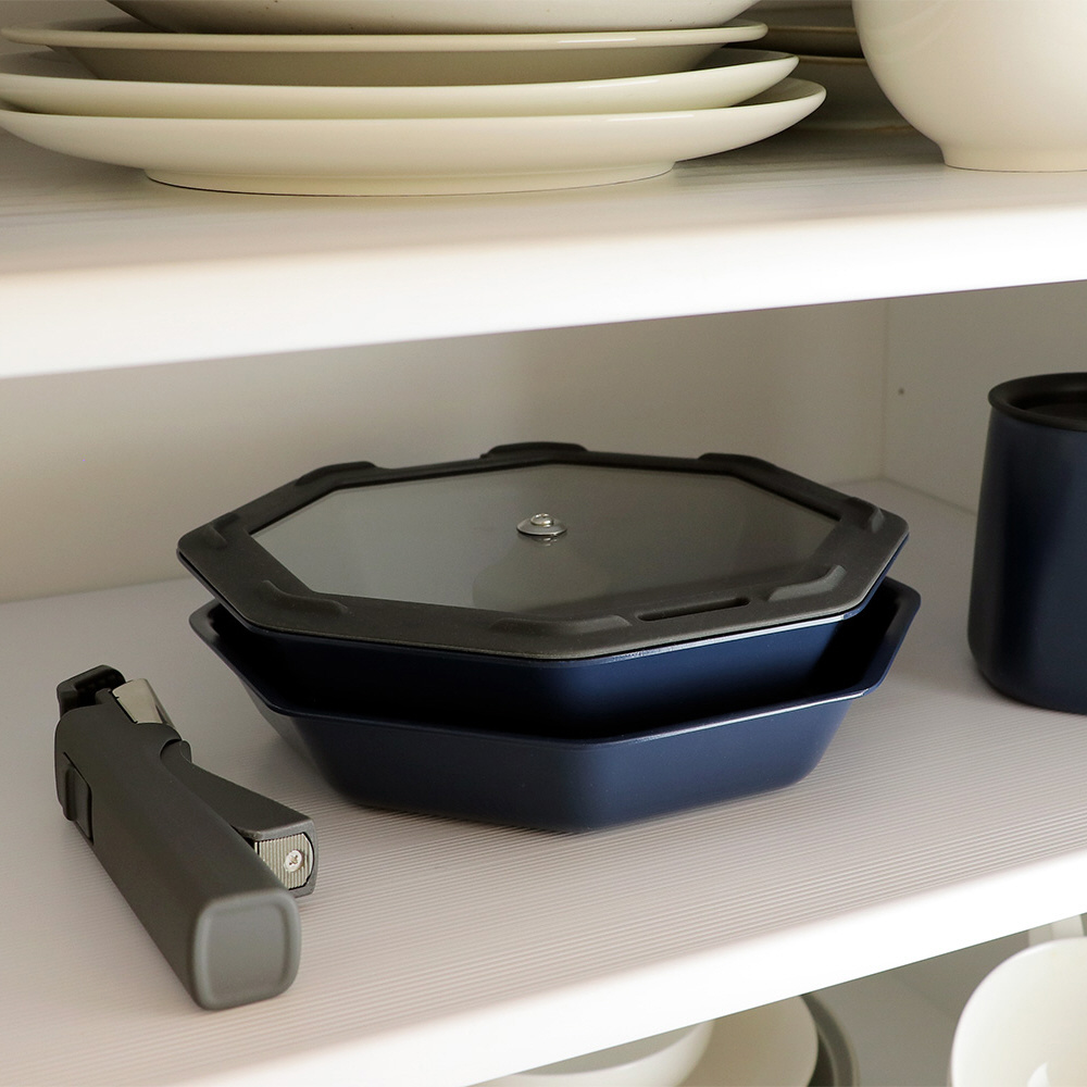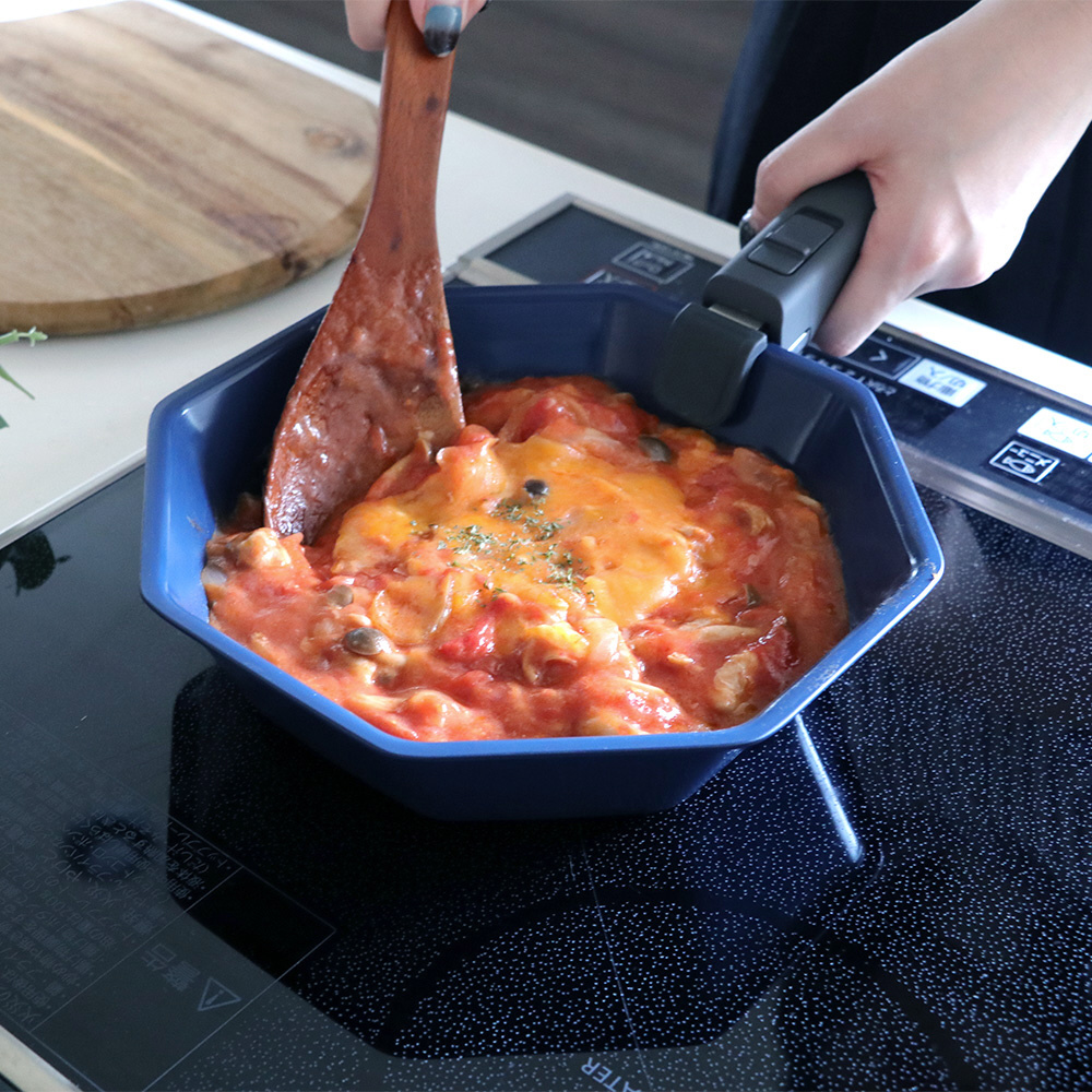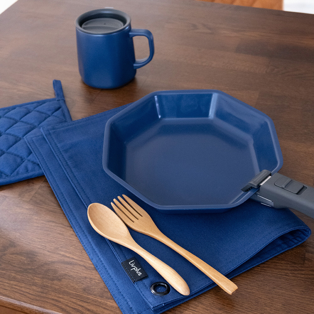 フライパン 深型フライパン ガラス蓋 取っ手 4点セット IH ガス火対応 オーブン 食洗機対応 インディゴ キッチン ネイビー LV-0051
