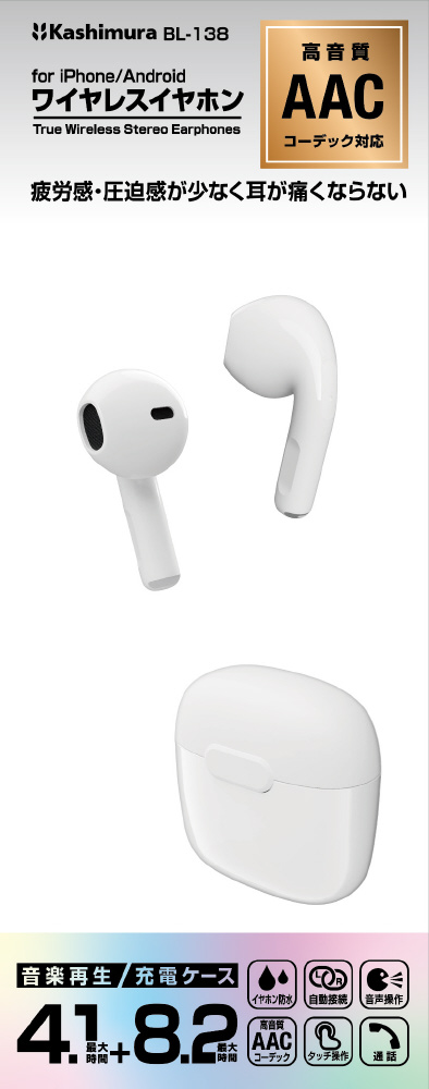 完全ワイヤレスイヤホン ホワイト BL-138 [ワイヤレス(左右分離) /Bluetooth対応]