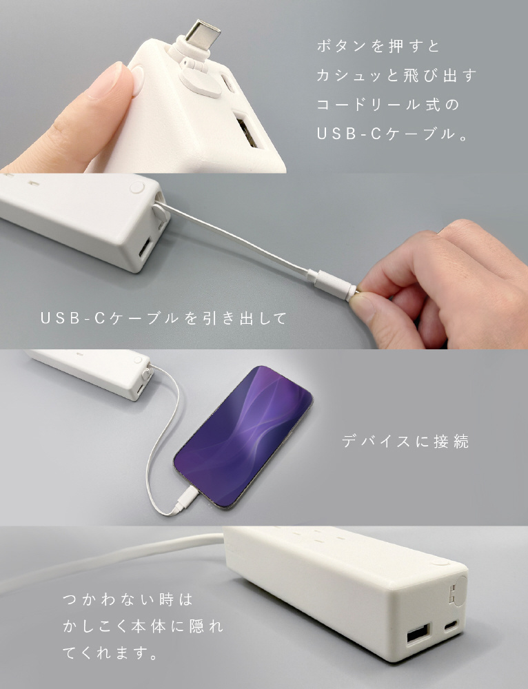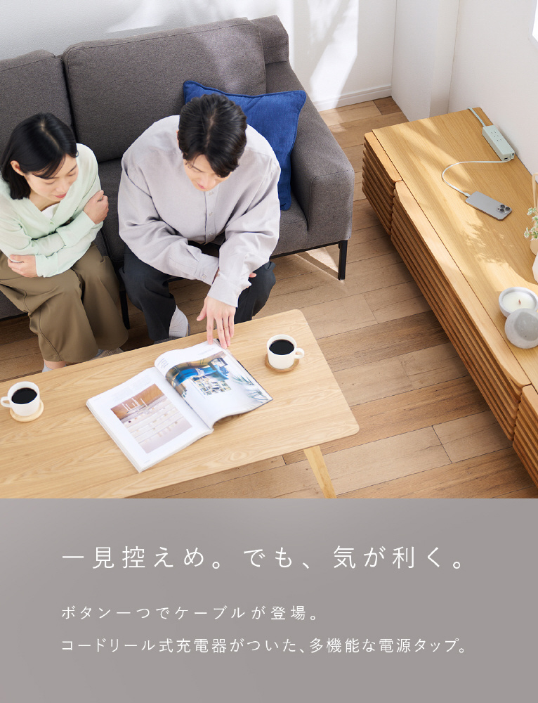 一見控えめ。でも、気が利く多機能電源タップ(コードリール式USBケーブル内蔵)