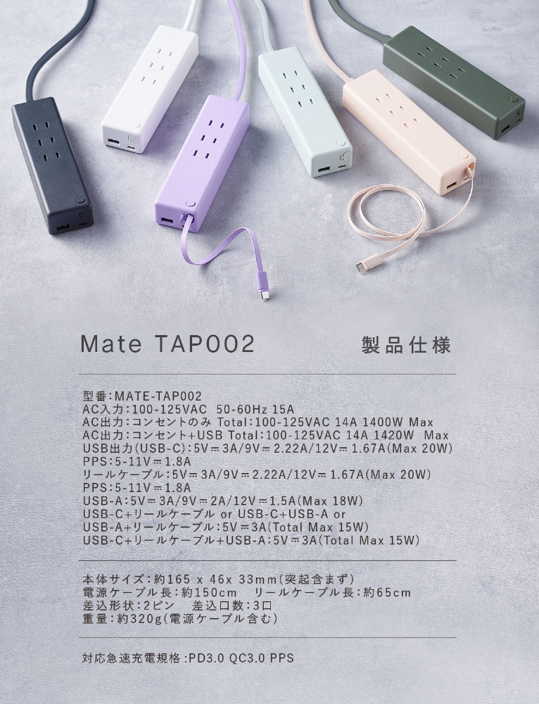 Mate TAP 002 カームブルー [1.5m /3個口 /2ポート]