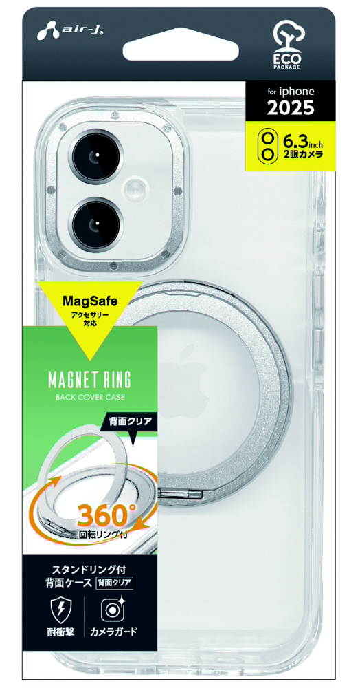iPhone2025 秋 6.3インチ 2眼 Magsafe対応回転リングスタンドクリアケース SK