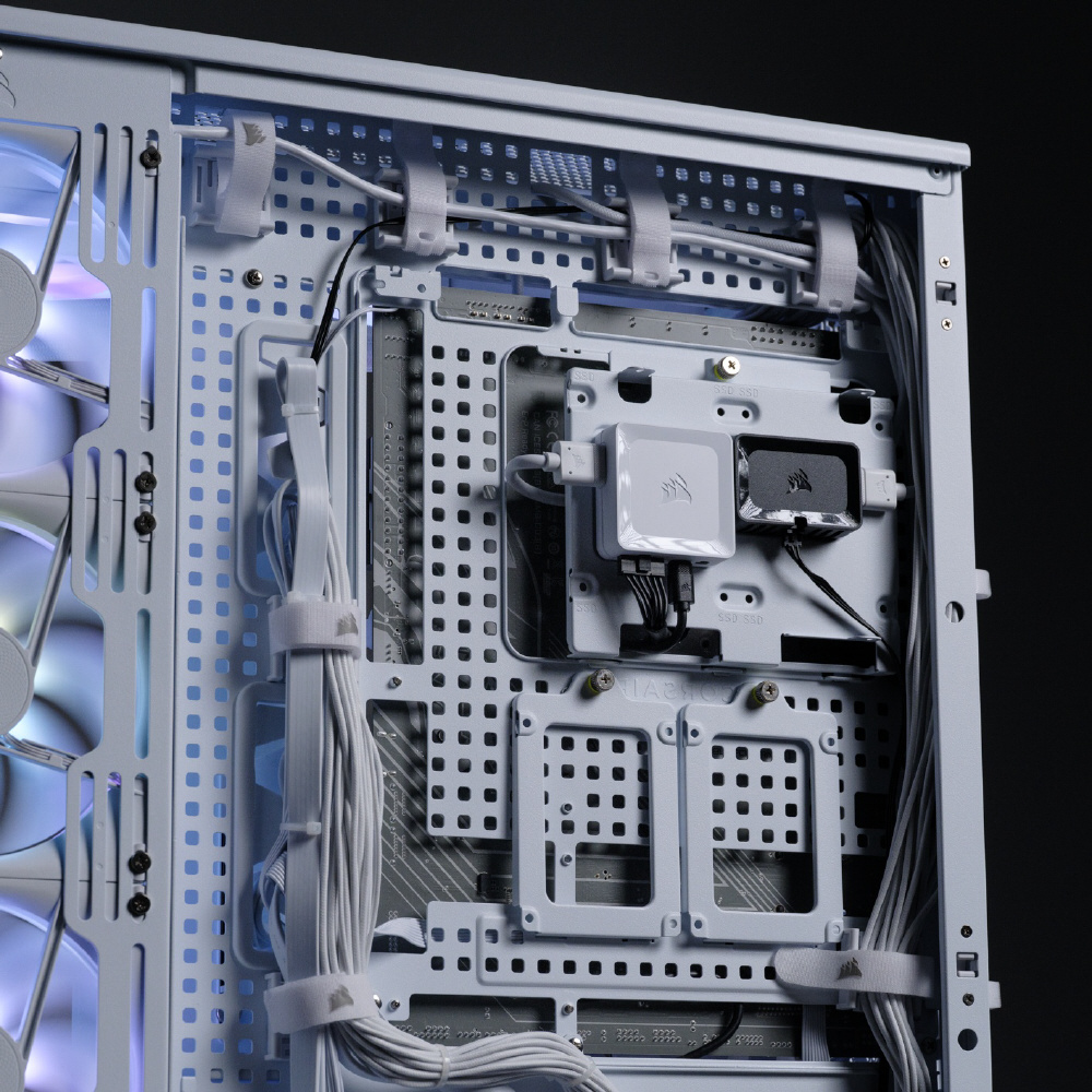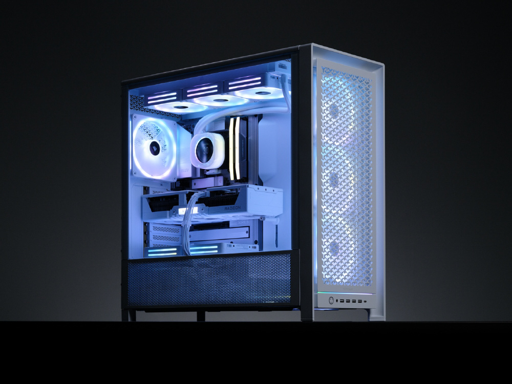 InfiniRailシステムにより柔軟なファンレイアウトを実現。RGBファンを備え、背面コネクタ設計のマザーボードに対応するミドルタワー型PCケース