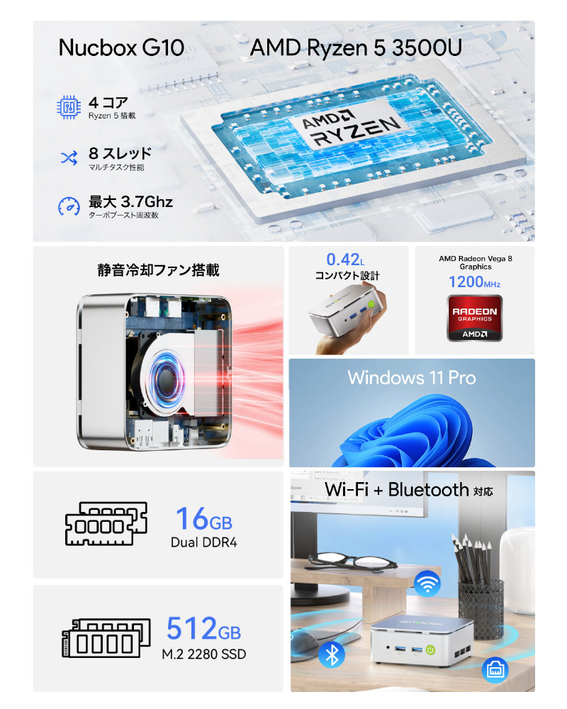 GMKtec NucBox G10は、AMD Ryzen 5 3500Uを搭載した高性能ミニPCです。