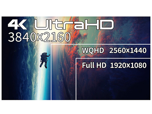 ■4KはフルHD(1920×1080)解像度の約4倍の作業領域を実現する3840×2160ドットの解像度となり、高精細な表示を実現します。ゲームプレイ時だけでなく、デスクワークに使用時にも高い生産性を実現できます。