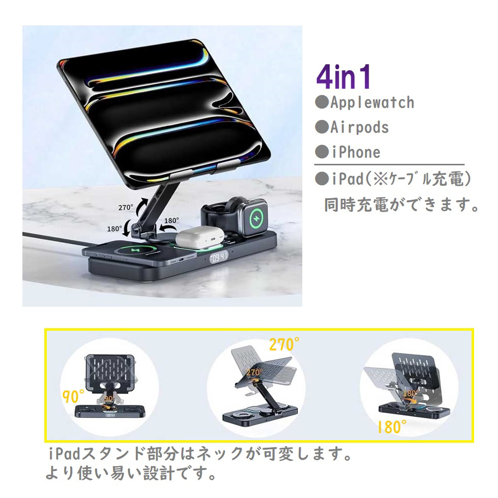 4in1 Apple Watch・iPad充電ステーション  WH RM-2649WH