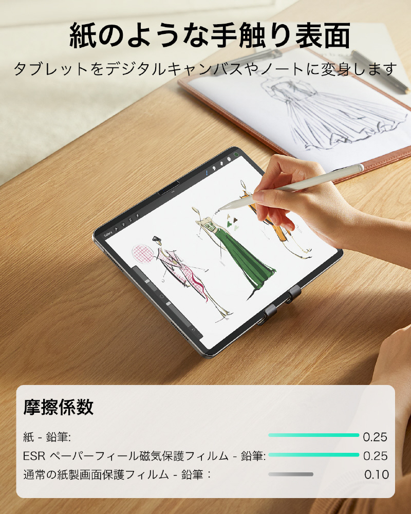 特殊加工された表面は、タブレットをデジタルキャンバスやノートに変えるプロレベルの描画面を提供します。繊細な表面により、ペン先の摩耗を減らし、完璧な耐久性を実現。