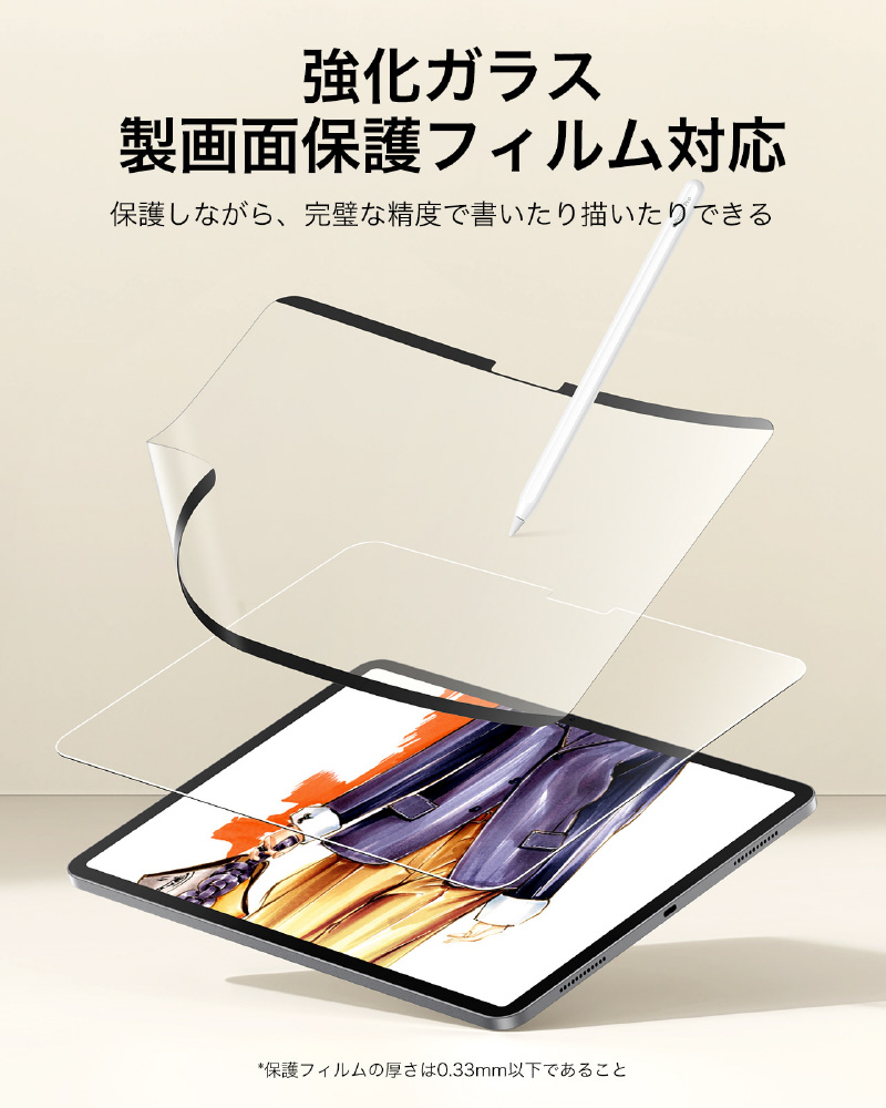 厚さ0.33mm以下の強化ガラススクリーン保護フィルムと互換性があり、スクリーンに傷をつけることなくマグネット保護フィルムと併用することができ、2倍の保護にもなります。