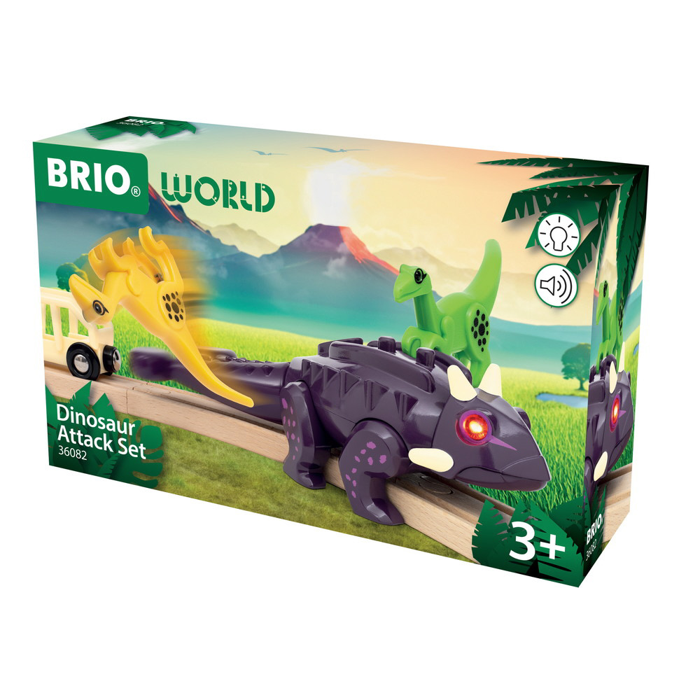 BRIOの木製レールにぴったりハマるように作られたアンキロサウルスは、目を赤く光らせ咆哮をあげます。