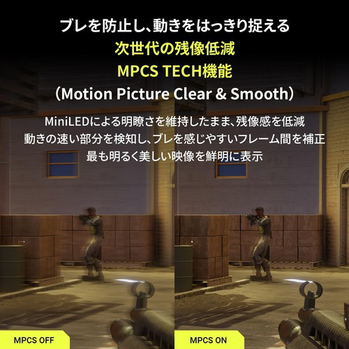 一瞬の判断が勝敗を分けるゲームにおいて、画面全体を把握しやすい24.5inchサイズ、視認性として有利な量子ドットMiniLEDを採用。