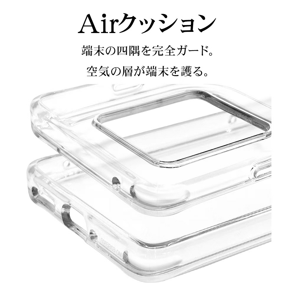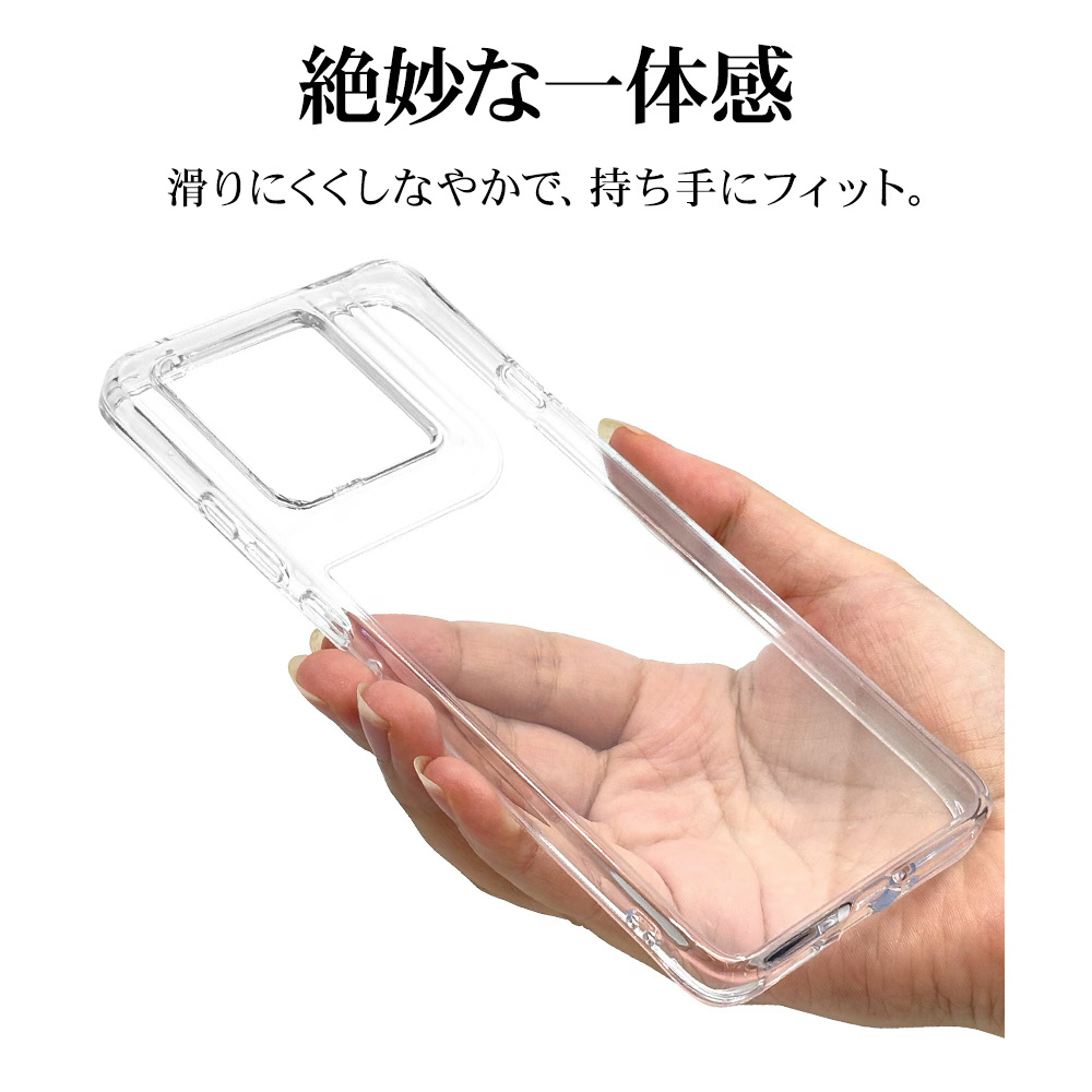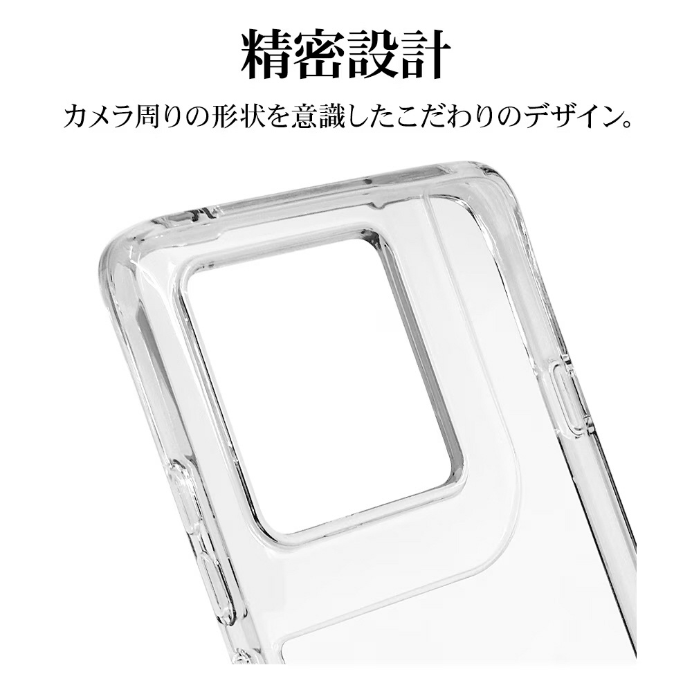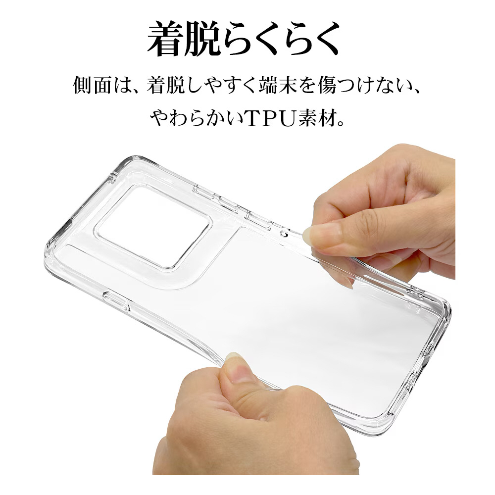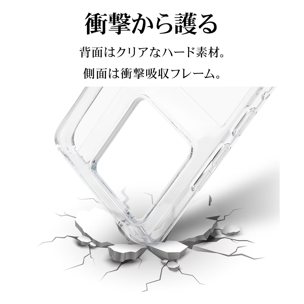 ●側面は弾力と柔軟性を兼ね備えたTPU素材で端末を衝撃から保護。背面は傷に強いポリカーボネート素材を使用しています。※衝撃吸収については、一般的なポリカーボネート製ケースと比較した自社検証結果で、無破損、無故障を保証するものではありません。