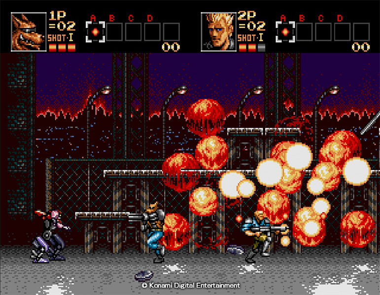 『魂斗羅 ザ・ハードコア』(1994)暴走した機動兵器に立ちむかう4人の新主人公の活躍を描く。