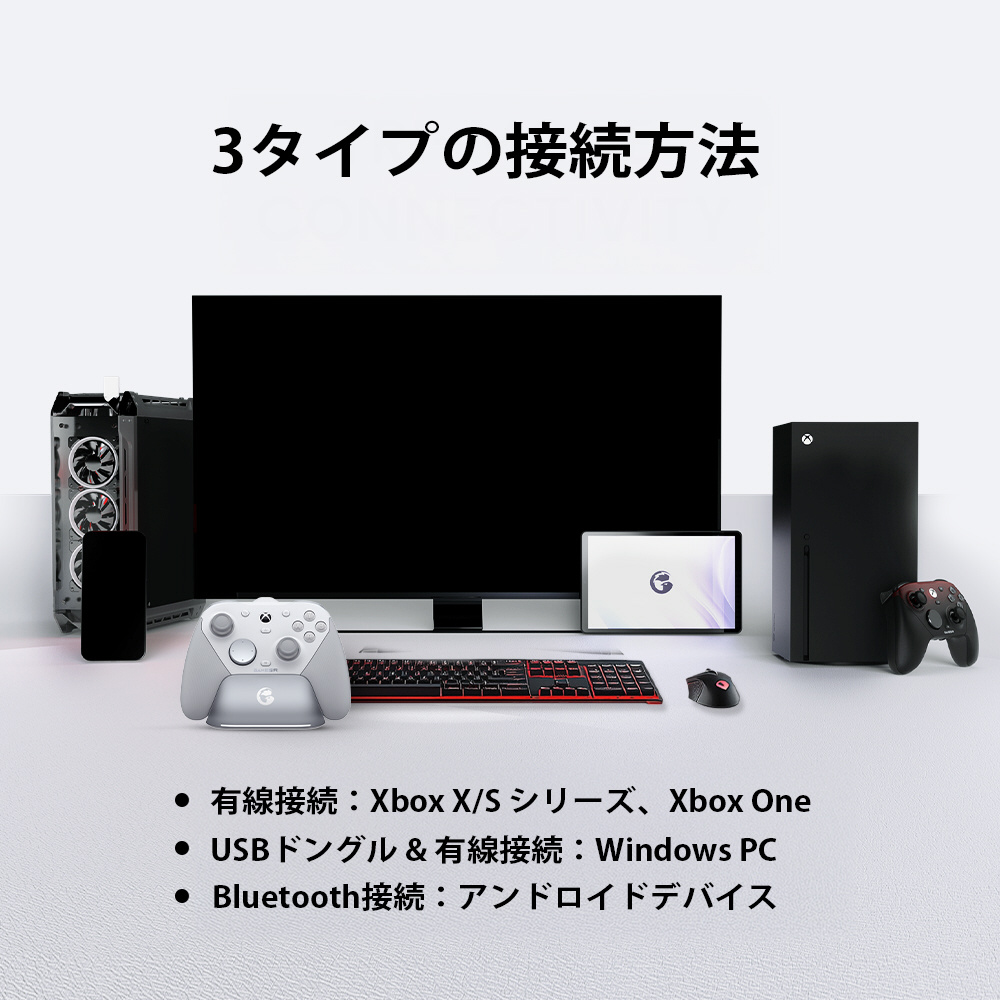 Xbox公式ライセンス取得 有線&無線接続 高精度&高耐久TMR仕様ジョイスティック搭載 XBOX/Windows PC/アンドロイド対応ゲーミングコントローラー 充電台付き 白モデル