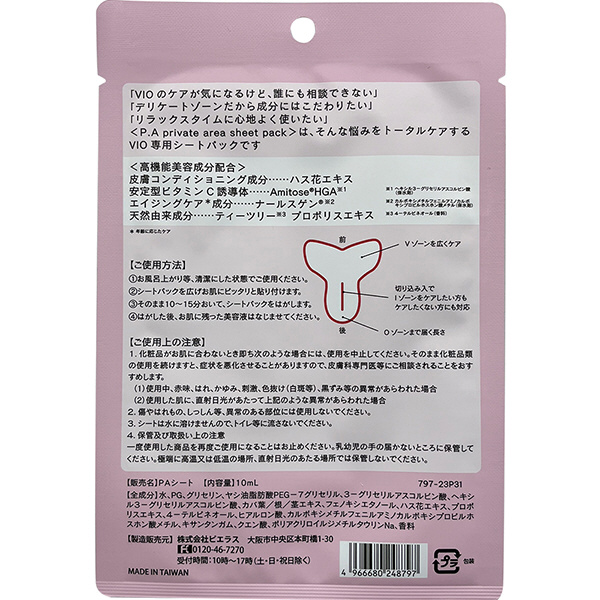 商品名 | P.A プライベートエリアシートパック 10ml/1枚 |