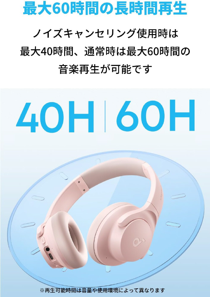 商品名 ブルートゥースヘッドホン Soundcore Q20i ピンク A3004Z52 [ノイズキャンセリング対応 /Bluetooth対応]