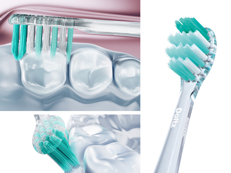歯周ポケットまで入り込む極細毛と、奥歯の奥まで届く薄型ヘッドで、磨き残しの多い部分まで除去。