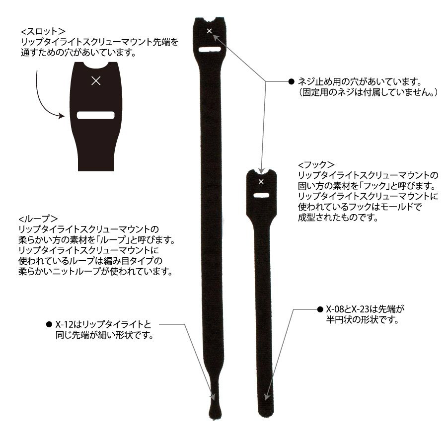 商品名 リップタイライトスクリューマウント ハトメ付き 15.88mmX304.8mm 100本巻 黒 RIP-TIE
