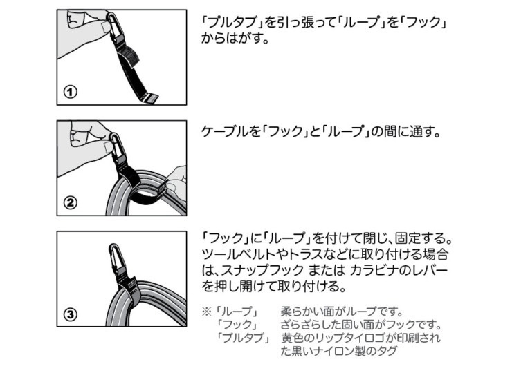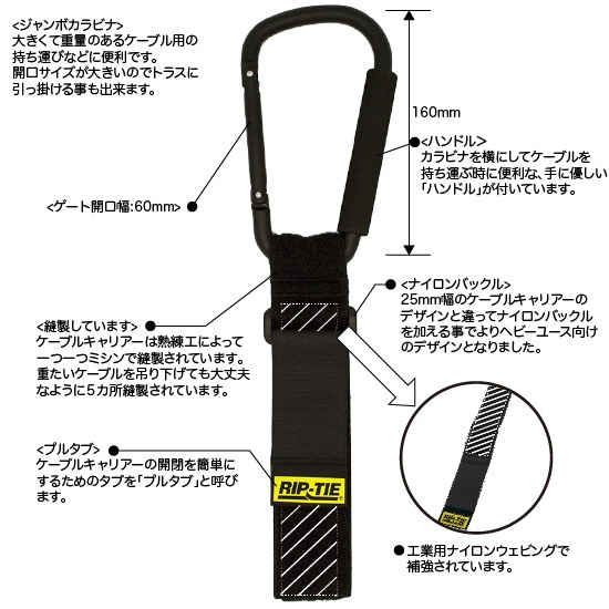 商品名 ケーブルキャリアー ウェビング付き(特大カラビナ) 50.8mmX508mm 5本入 黒 RIP-TIE