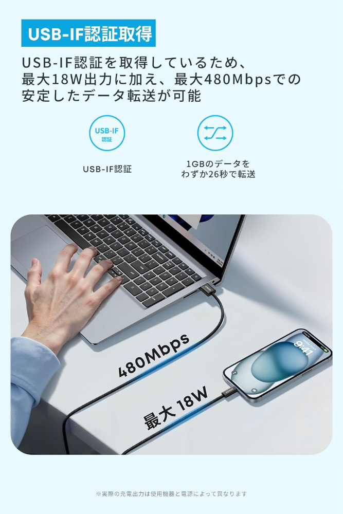 Carplay対応のUSB-C & USB-Aケーブル