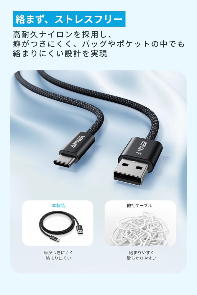 Anker Zolo USB-C & USB-A ケーブル 1.0m ブラック A8052011 [USB-A ⇔ USB-C]