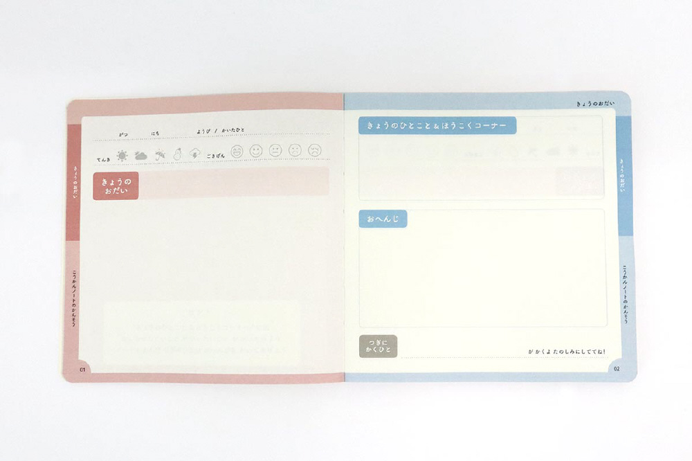 ■総ページ数144ページ(72枚)で、説明ページ・目次ページ・交換ページ・お絵描きページ・感想ページと分かれており文字の練習や絵やその日感想など自由に書くことができます。