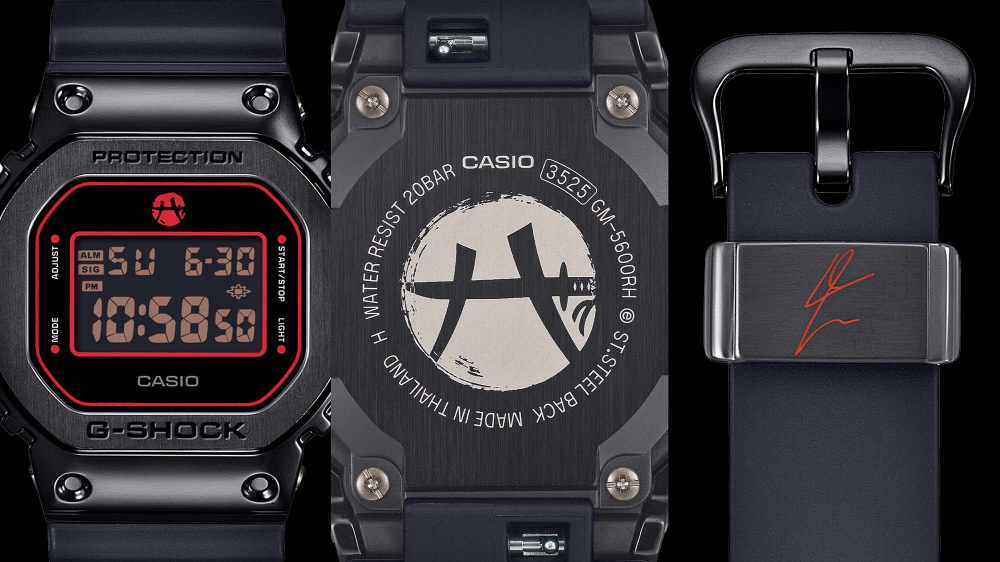 メタルベゼルが特徴のGM-5600をベースモデルに採用し、力強いブラックを基調に、情熱的なレッドのアクセントカラーをあしらいました。