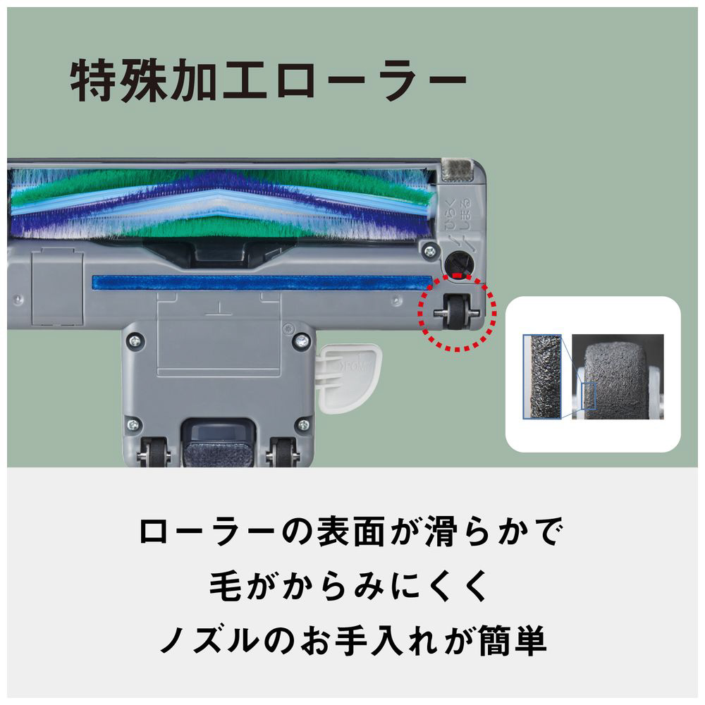 ローラーに特殊加工を採用。表面がなめらかなので、毛がからみにくく、ノズルのお手入れの負担を軽減。