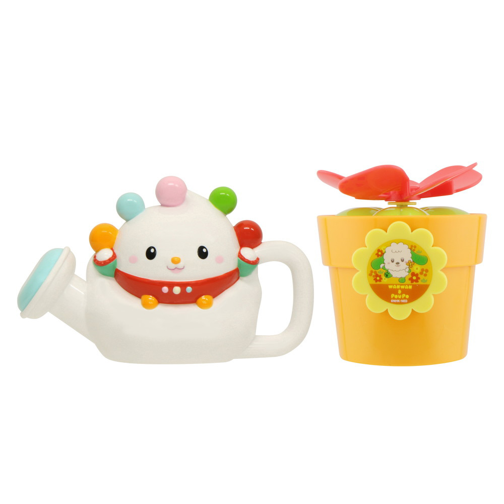 ぽぅぽのジョーロで付属のお花にお水をかけると花がくるくる回りながらのびてくるよ!